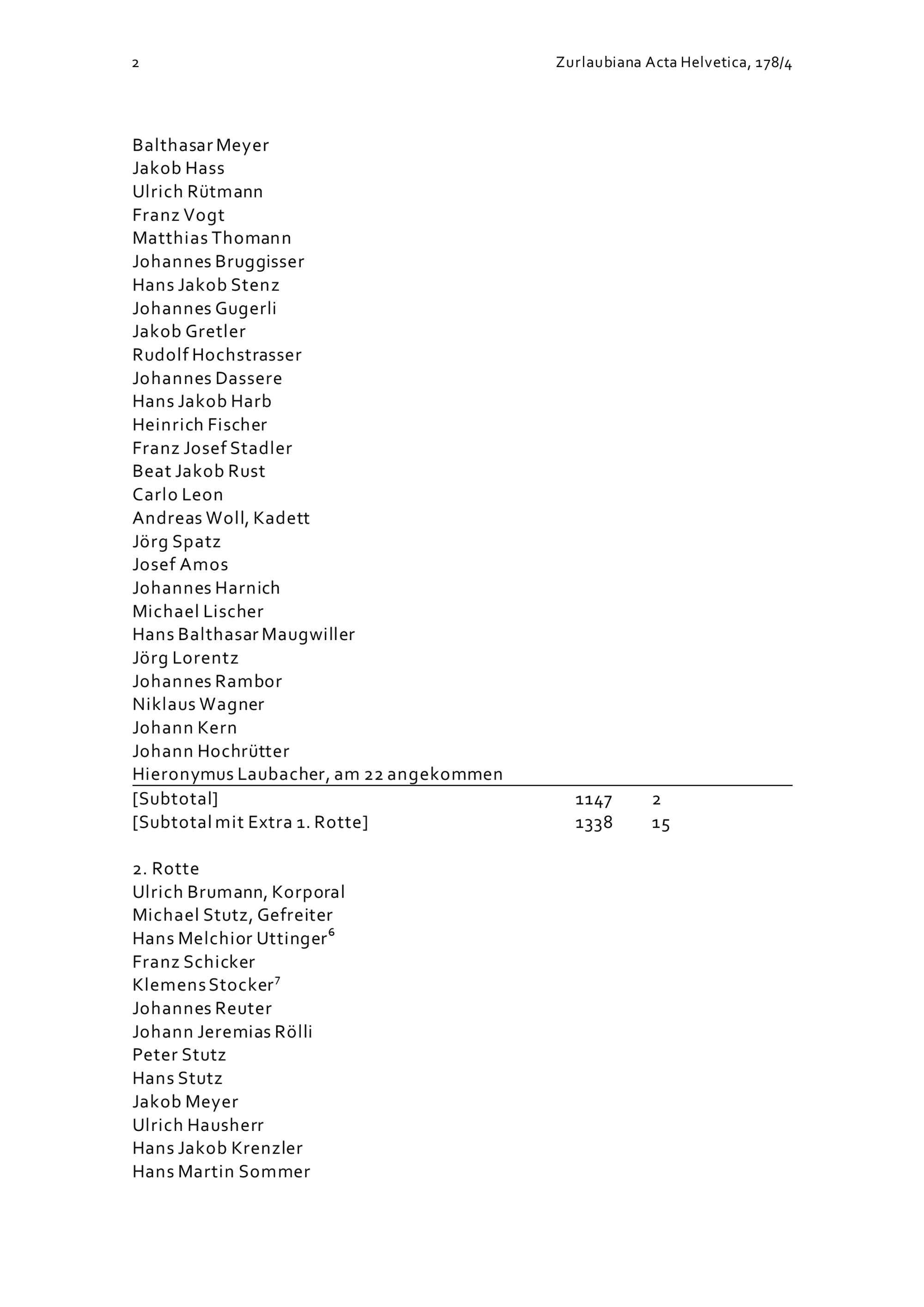 Mannschaftsrodel der Halbkompanien Zurlauben und Andermatt im Regiment Amrhyn in...