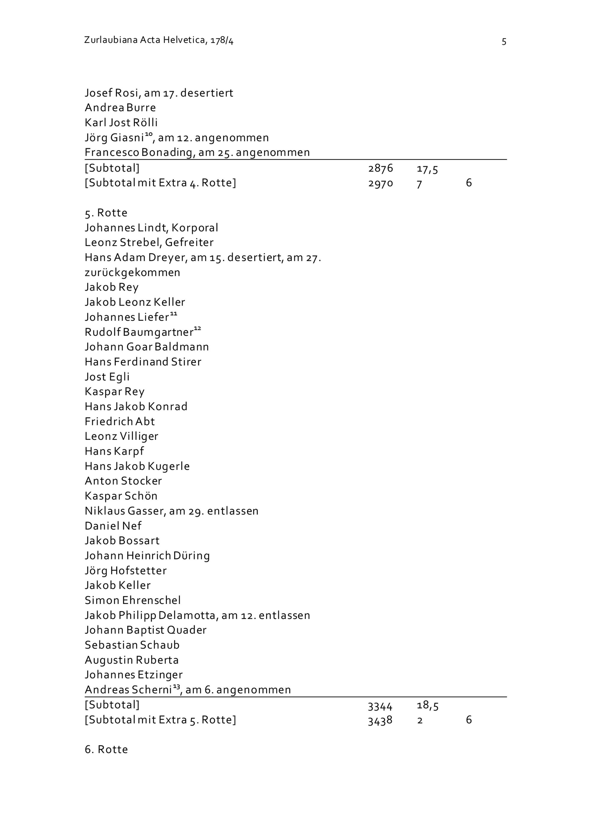 Mannschaftsrodel der Halbkompanien Zurlauben und Andermatt im Regiment Amrhyn in spanischen Diensten