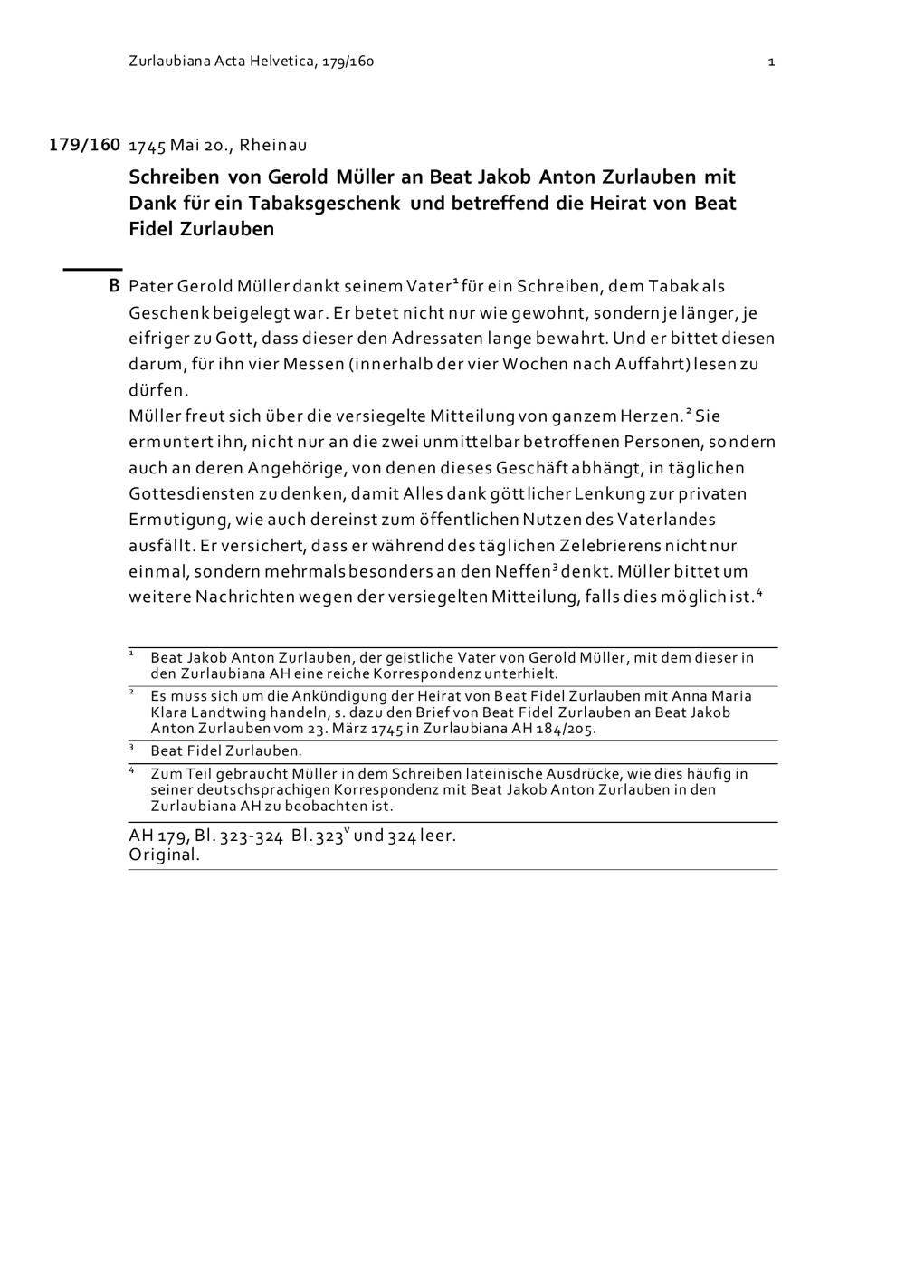Schreiben von Gerold Müller an Beat Jakob Anton Zurlauben mit Dank für ein Tabaksgeschenk...