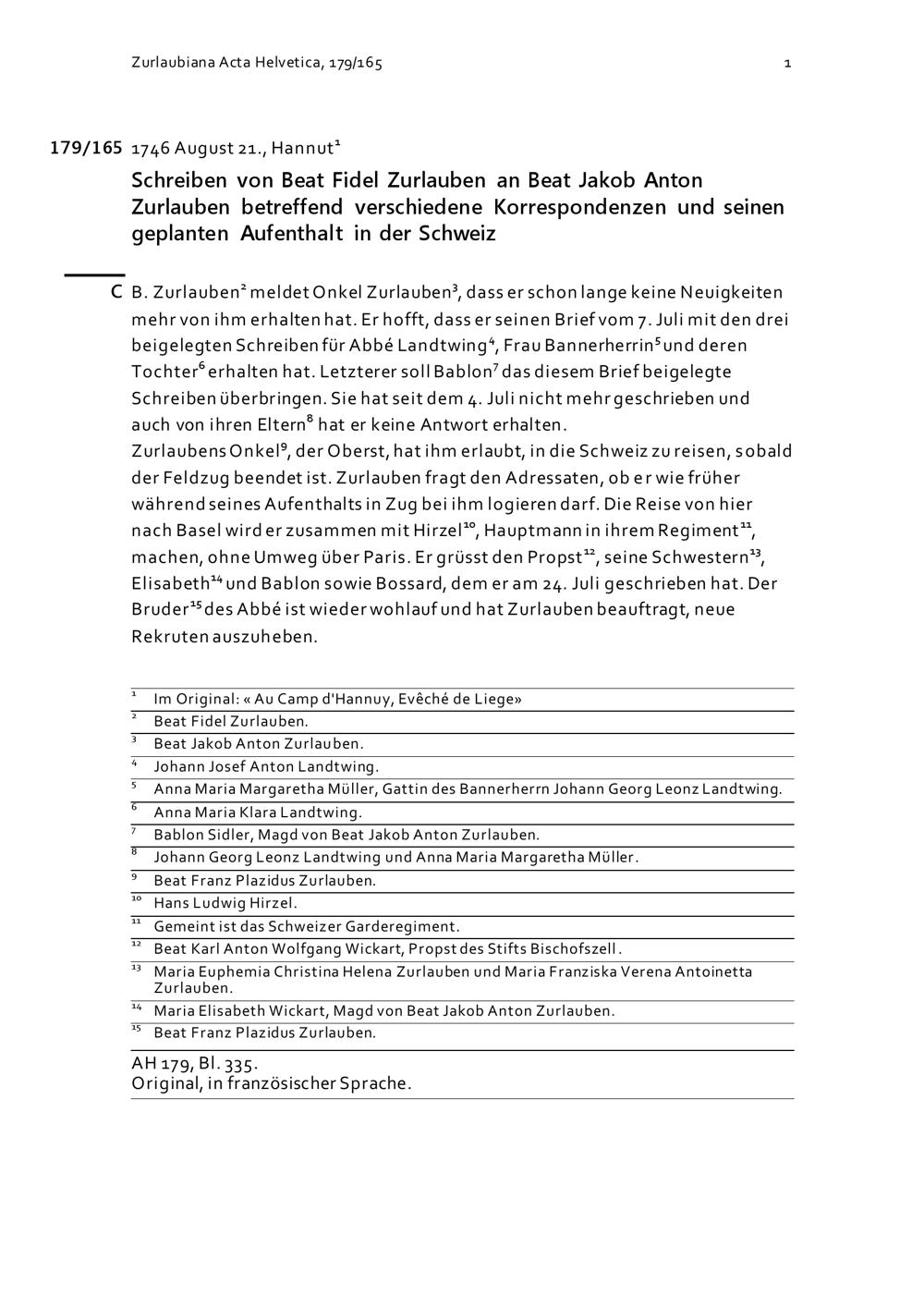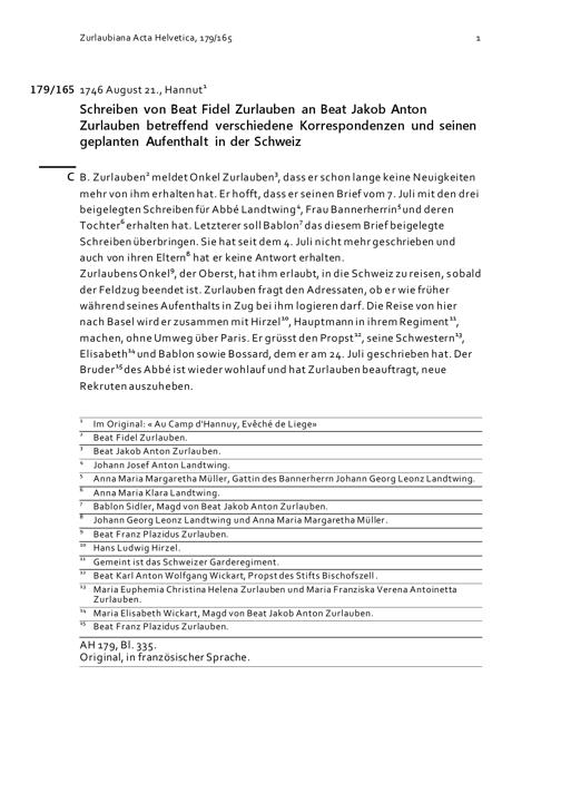 Schreiben von Beat Fidel Zurlauben an Beat Jakob Anton Zurlauben betreffend verschiedene...