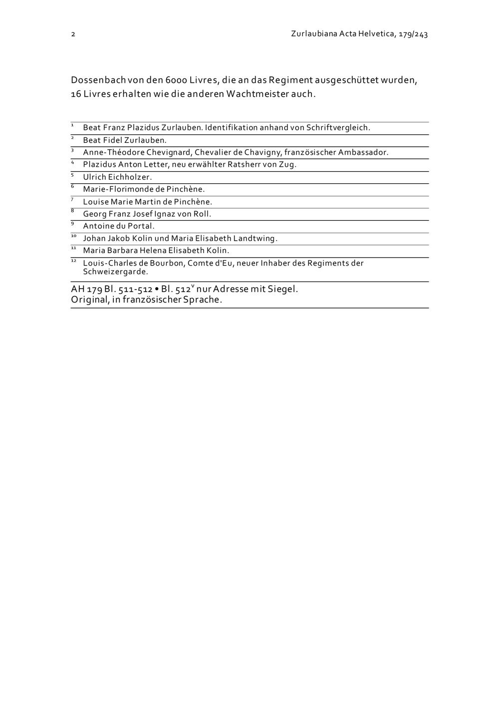 Schreiben von Beat Franz Plazidus Zurlauben an Beat Fidel Zurlauben betreffend das Verhalten gegenüber dem Ambassador, Rekrutierungen und die Desertion des Wachtmeisters Dossenbach