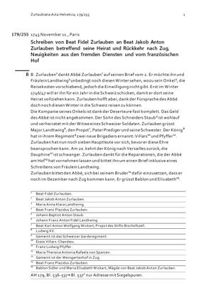 Schreiben von Beat Fidel Zurlauben an Beat Jakob Anton Zurlauben betreffend seine Heirat und Rückkehr nach Zug, Neuigkeiten aus den fremden Diensten und vom französischen Hof
