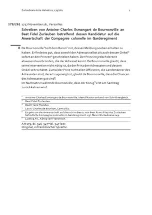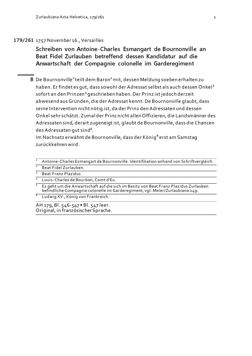 Schreiben von Antoine-Charles Esmangart de Bournonville an Beat Fidel Zurlauben betreffend...