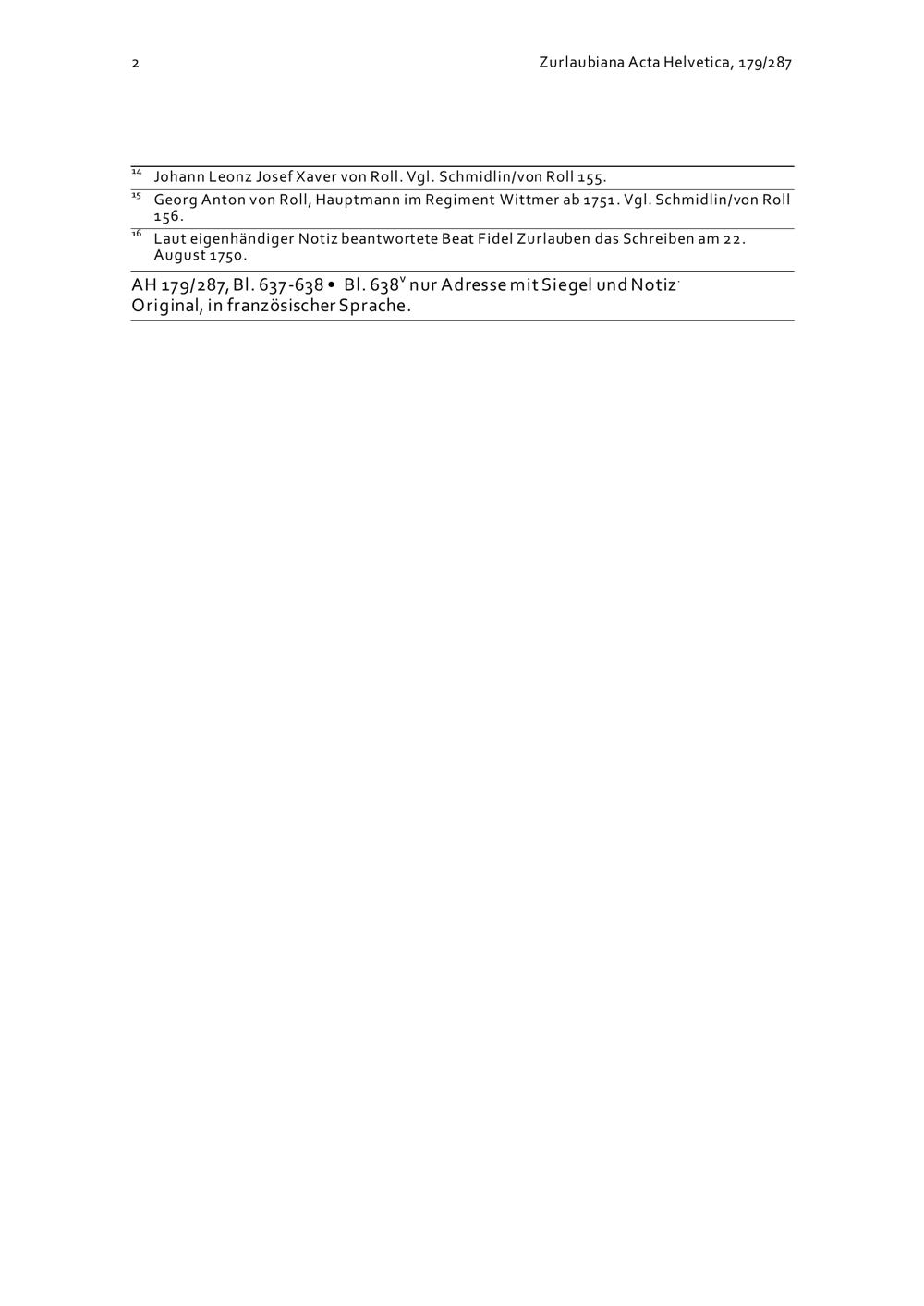 Schreiben von Antoine-René de Voyer d'Argenson, Marquis de Paulmy, an Beat Fidel Zurlauben betreffend Feste und die Kompanie von Roll im Regiment Widmer