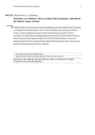 Schreiben von Ildefons Moos an Beat Fidel Zurlauben betreffend die Geburt seines...