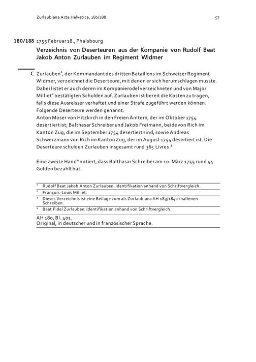 Verzeichnis von Deserteuren aus der Kompanie von Rudolf Beat Jakob Anton Zurlauben im Regiment Widmer