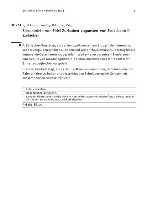 Schuldbriefe von Fidel Zurlauben zugunsten von Beat Jakob II. Zurlauben