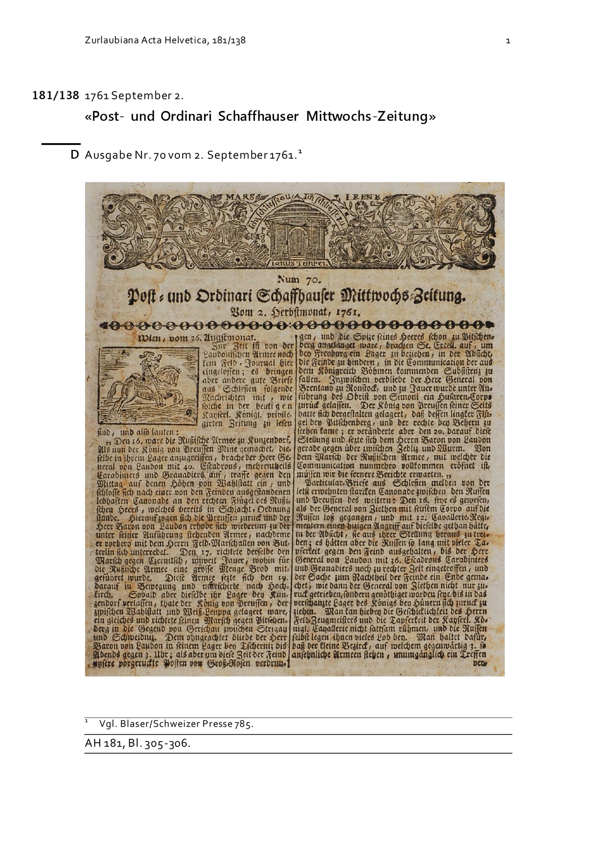 Zeitung: Post- und Ordinari Schaffhauser Mittwochs-Zeitung