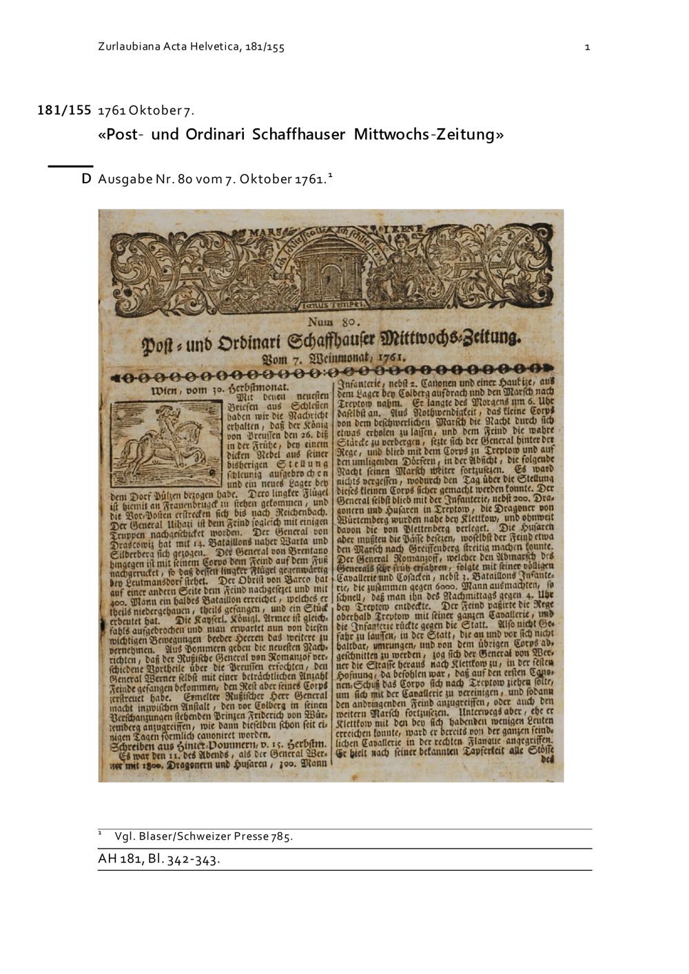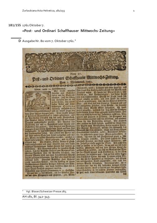 Zeitung: Post- und Ordinari Schaffhauser Mittwochs-Zeitung