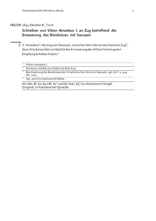 Schreiben von Viktor Amadeus I. an Zug betreffend die Erneuerung des Bündnisses mit...