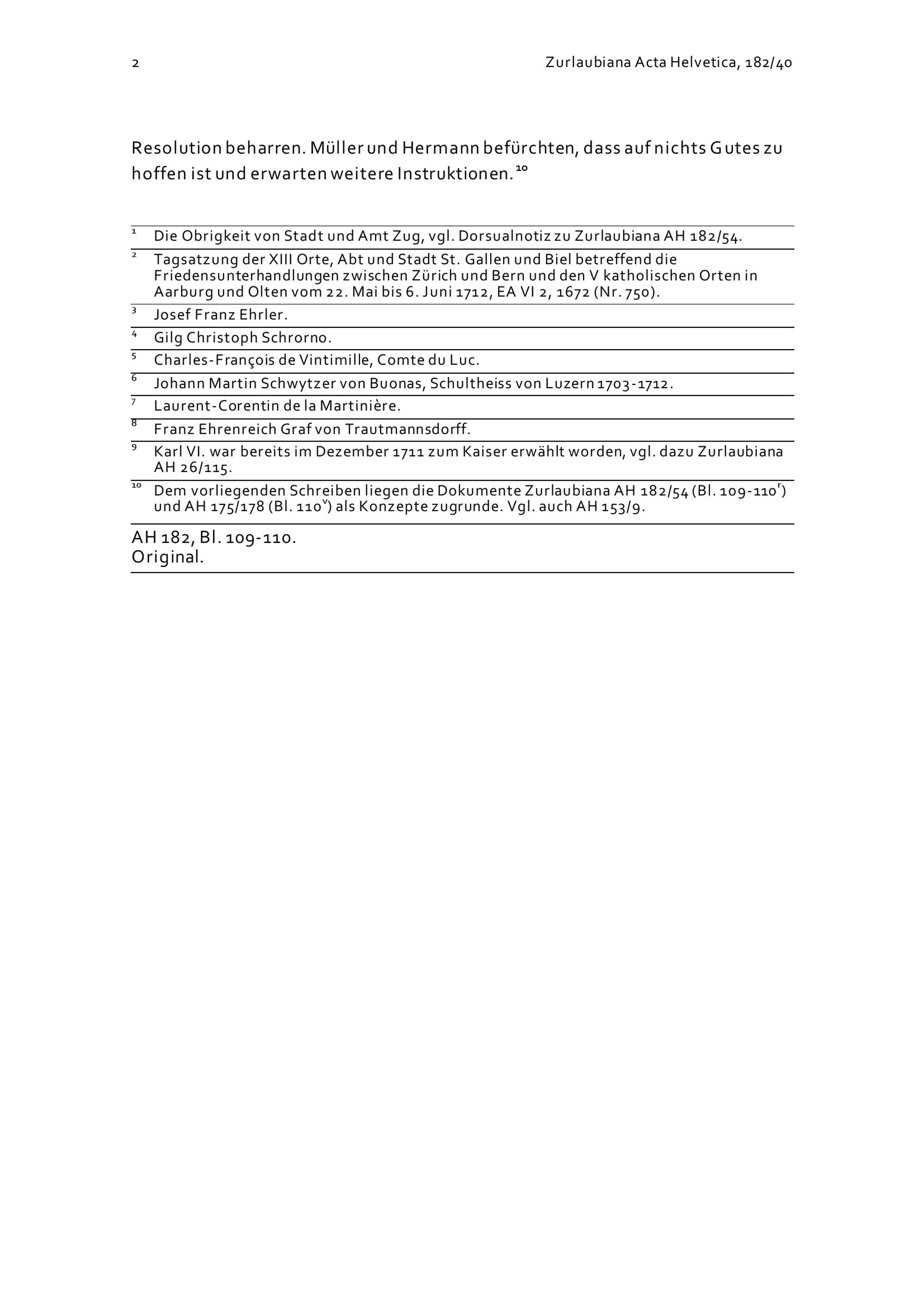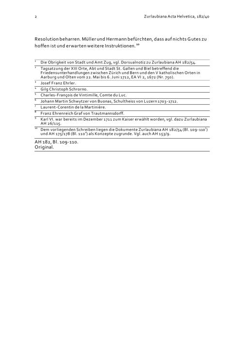 Schreiben von Wolfgang Damian Müller und Christian Hermann an Stadt und Amt Zug mit Berichterstattung über die Tagsatzung in Olten während des Zweiten Villmergerkriegs