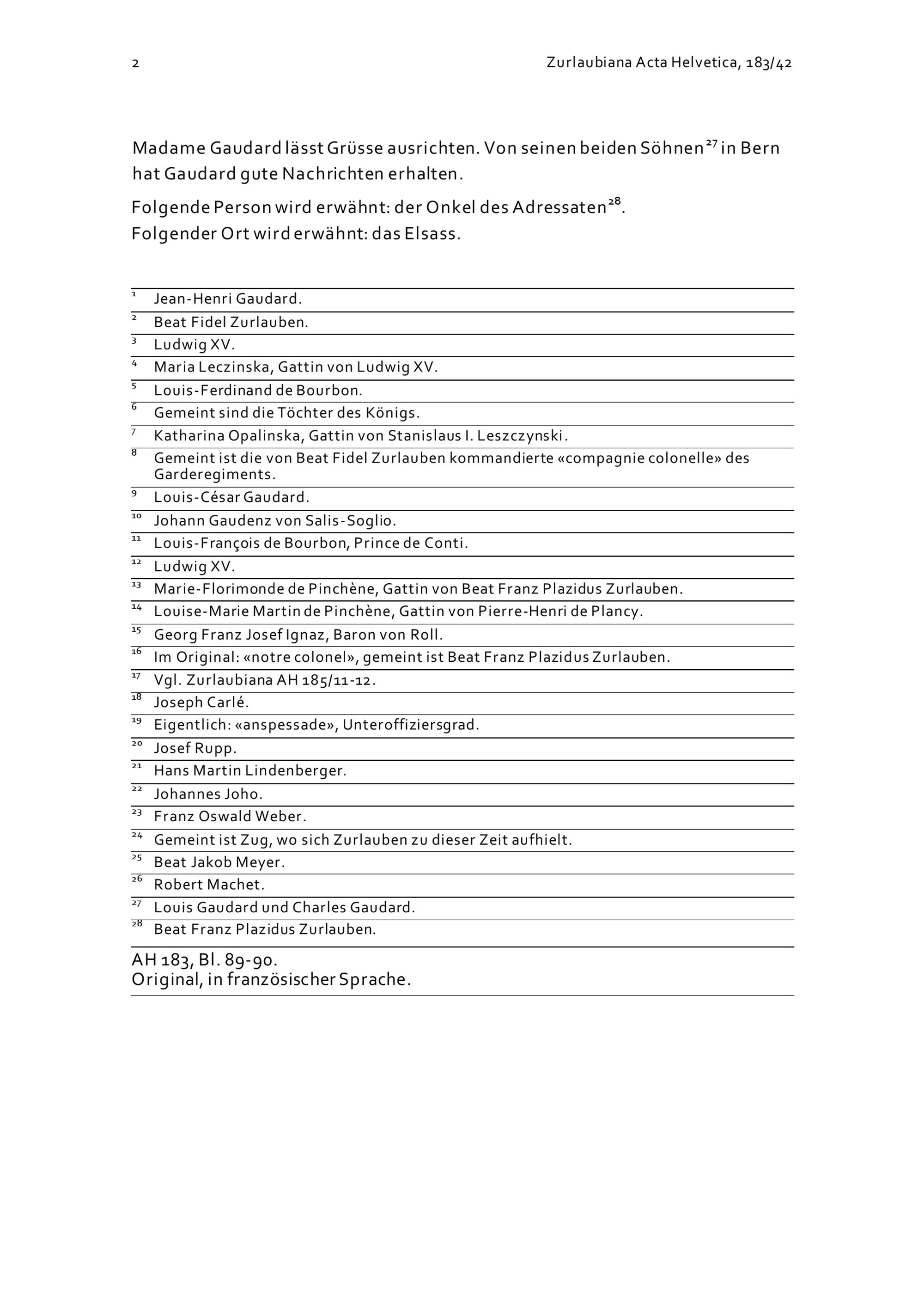 Schreiben von Jean-Henri Gaudard an Beat Fidel Zurlauben betreffend die Krankheit von Ludwig XV., den österreichischen Erbfolgekrieg sowie persönliche und militärische Angelegenheiten