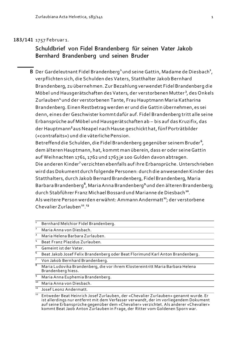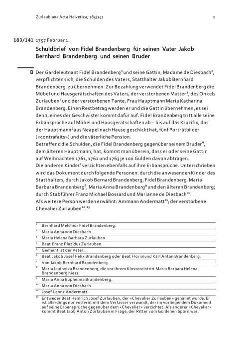 Schuldbrief von Fidel Brandenberg für seinen Vater Jakob Bernhard Brandenberg und seinen Bruder