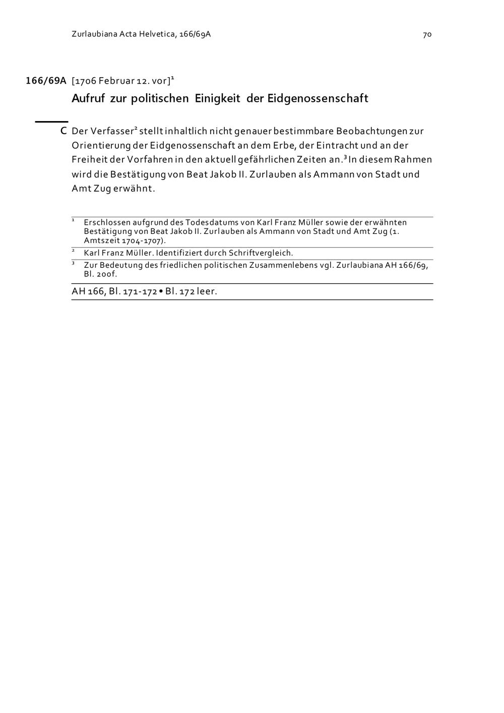 Acta Helvetica, Band 166