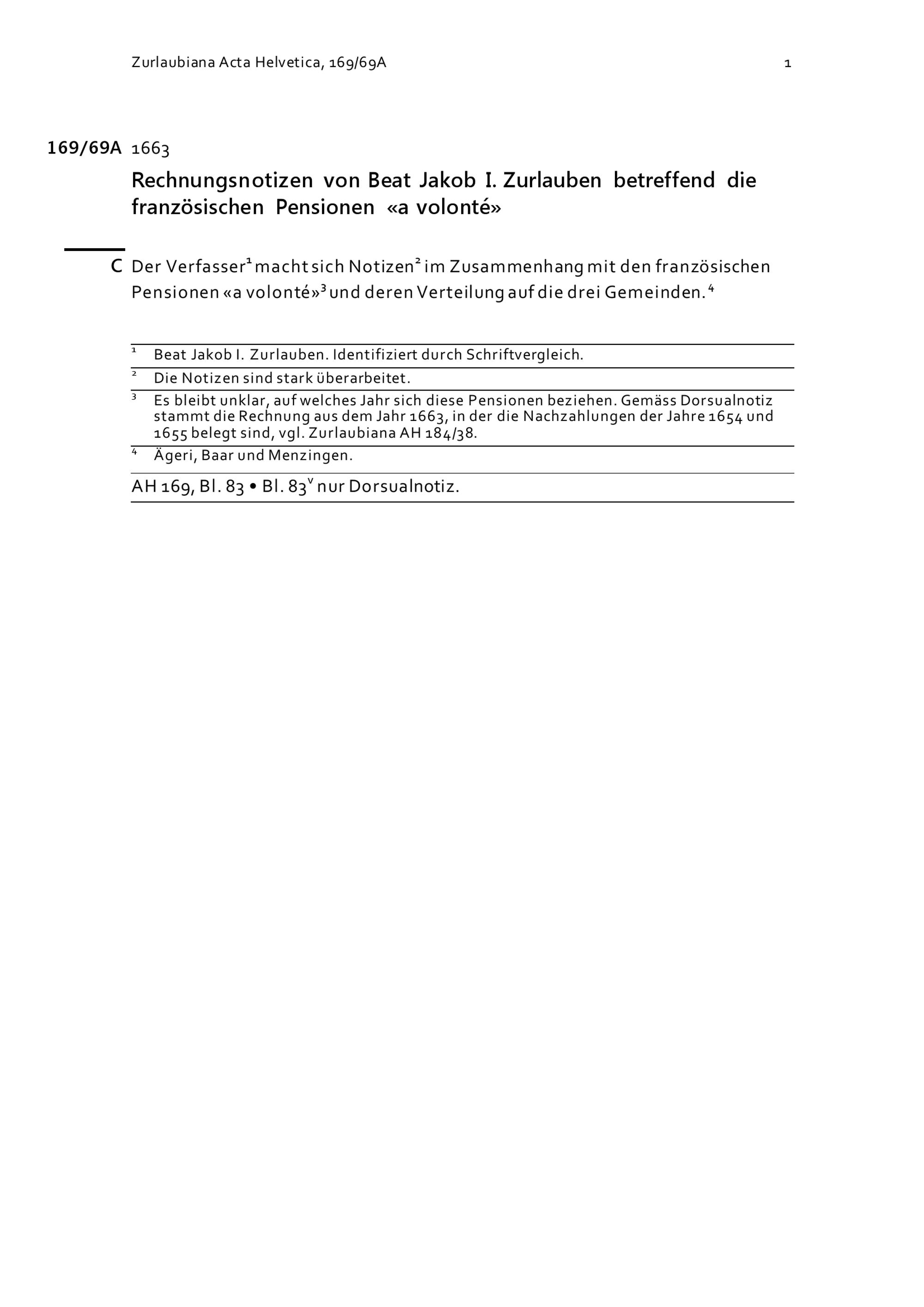Acta Helvetica, Band 169