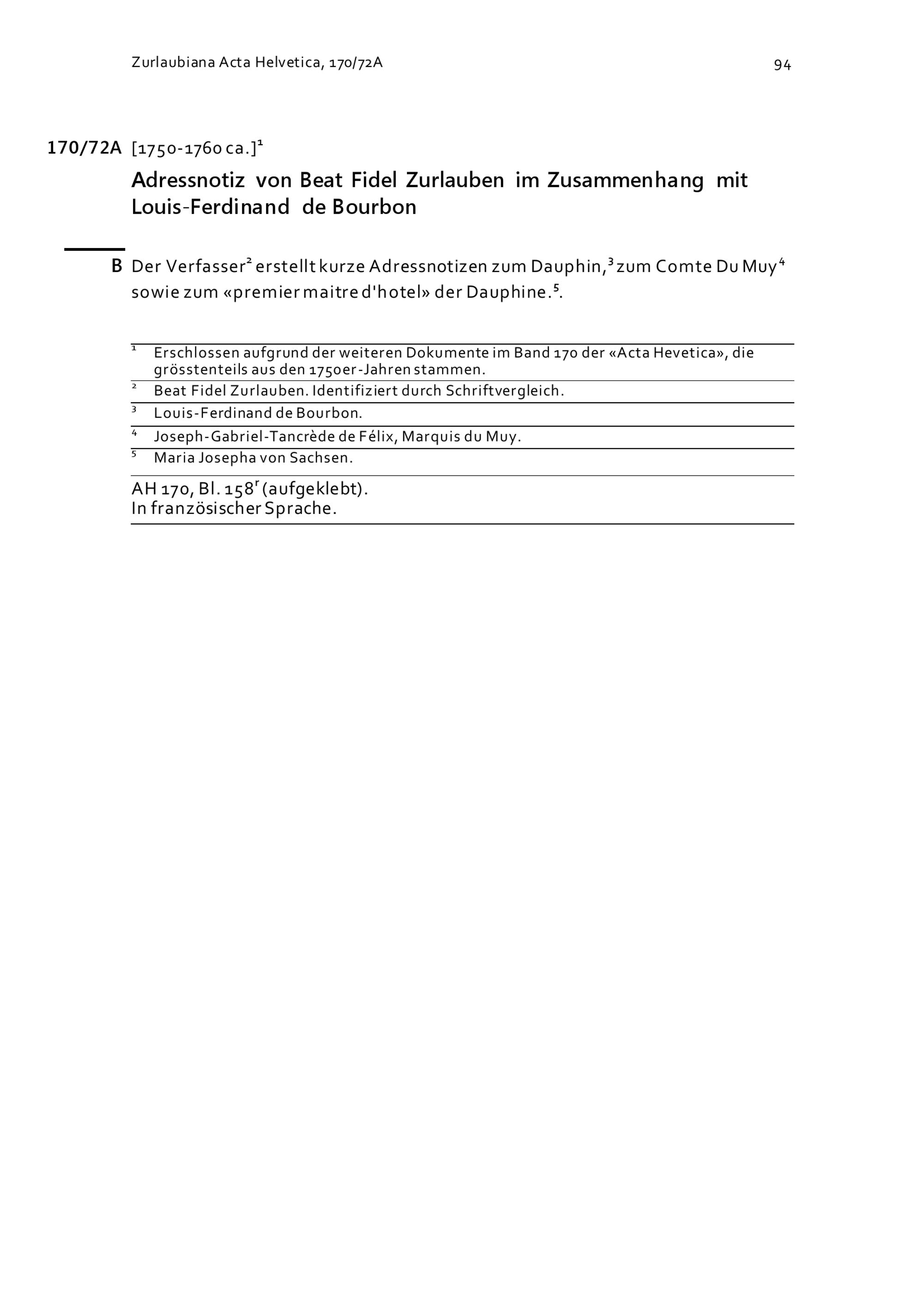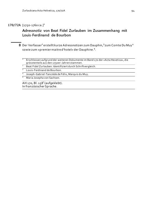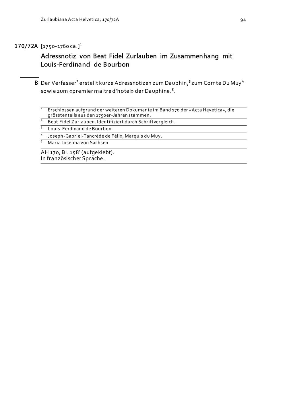 Adressnotiz von Beat Fidel Zurlauben im Zusammenhang mit Louis-Ferdinand de Bourbon
