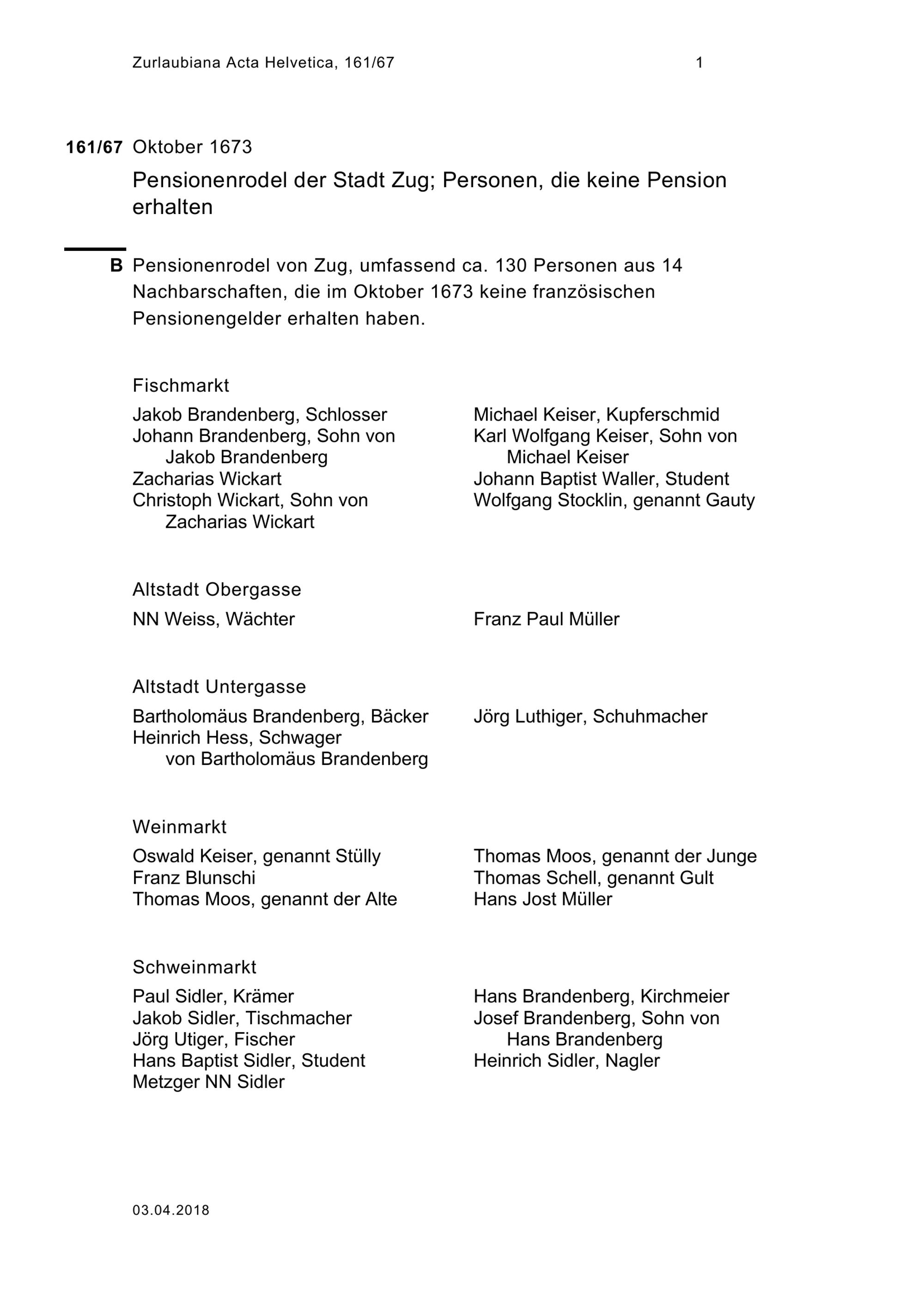 Pensionenrodel der Stadt Zug; Personen, die keine Pension erhalten