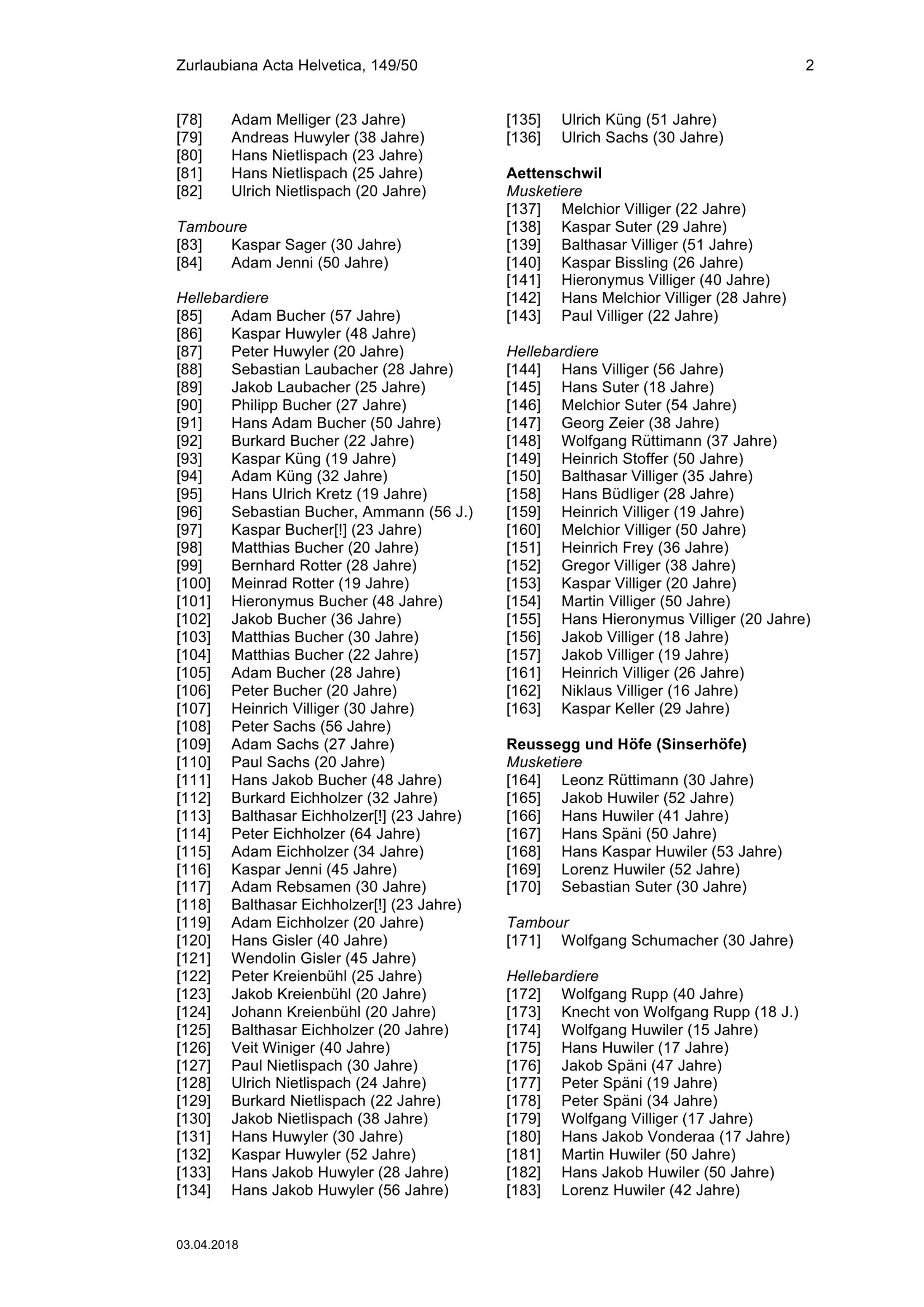 Mannschaftsrodel (= wehrpflichtige Männer) der Freien Ämter