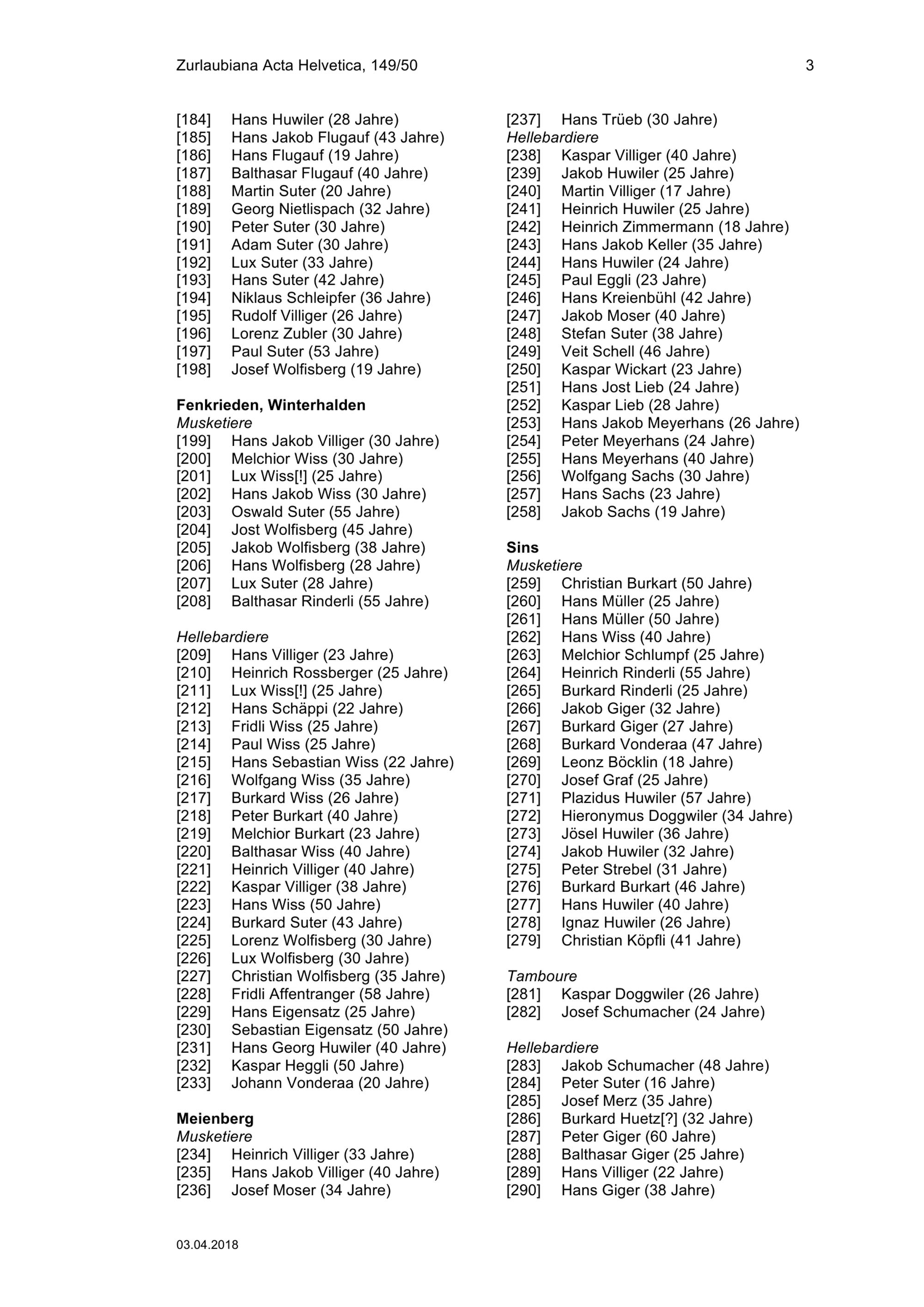 Mannschaftsrodel (= wehrpflichtige Männer) der Freien Ämter
