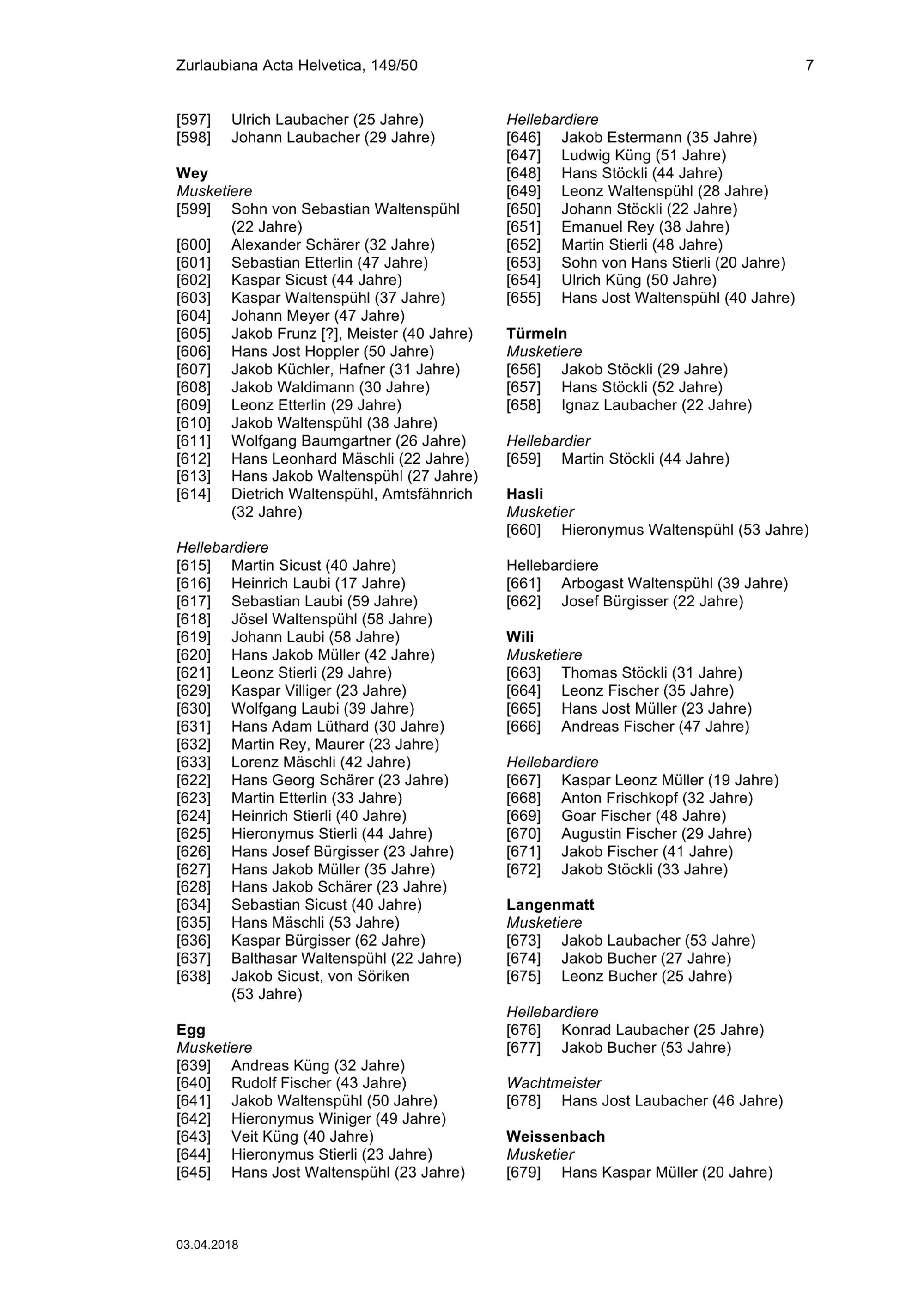 Mannschaftsrodel (= wehrpflichtige Männer) der Freien Ämter