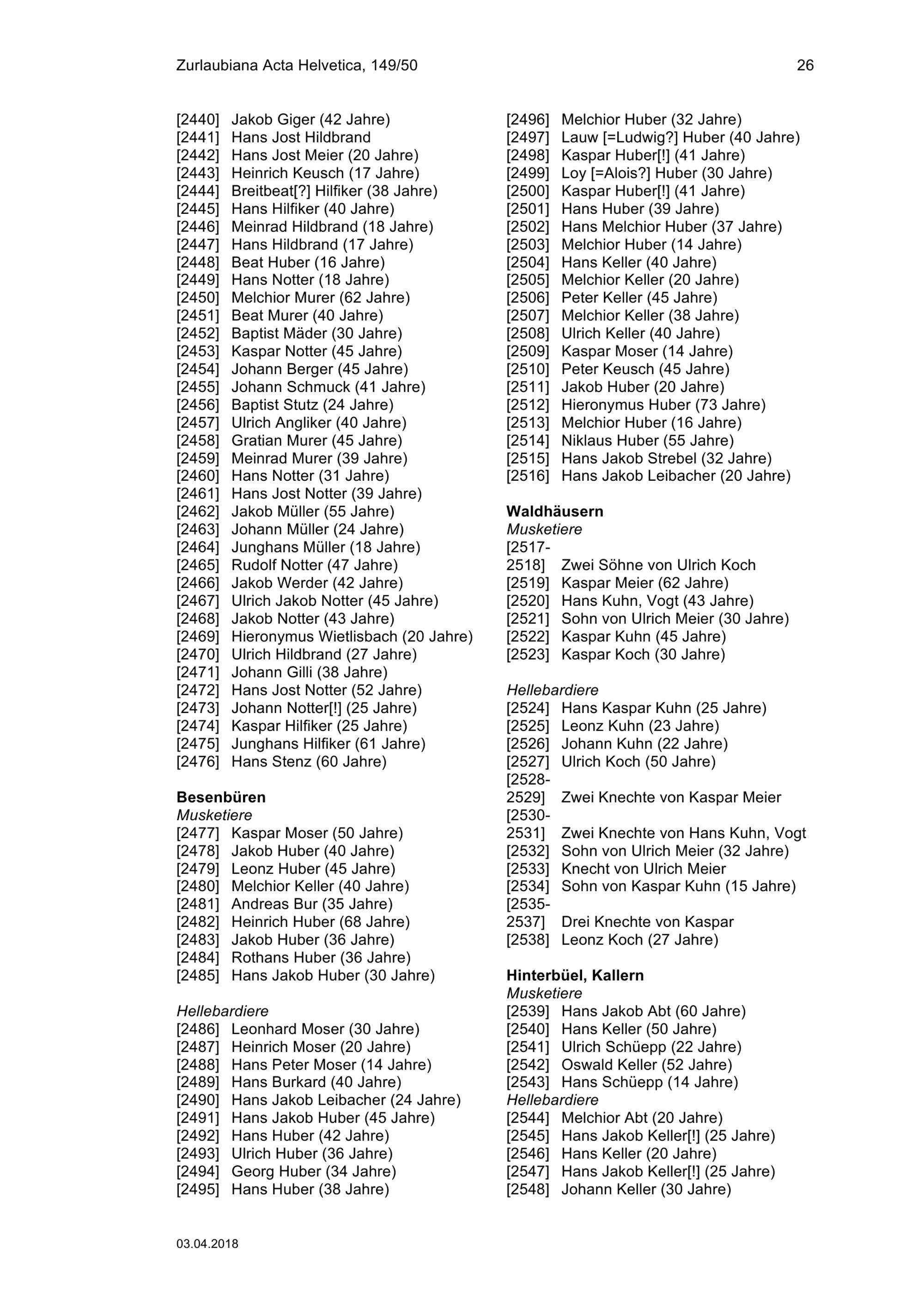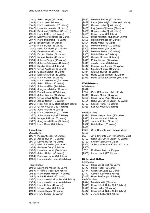 Mannschaftsrodel (= wehrpflichtige Männer) der Freien Ämter