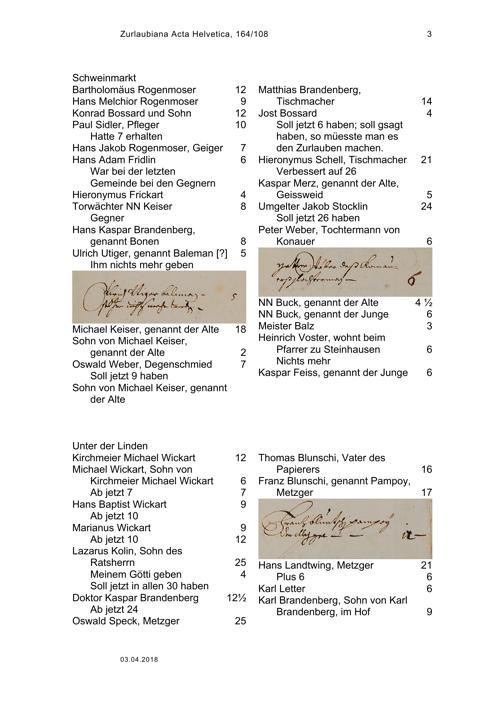 Pensionenrodel der Stadt Zug: Empfänger nach Nachbarschaften