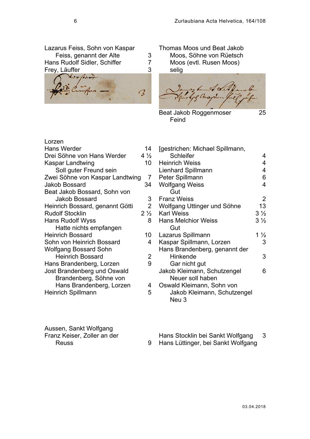 Pensionenrodel der Stadt Zug: Empfänger nach Nachbarschaften