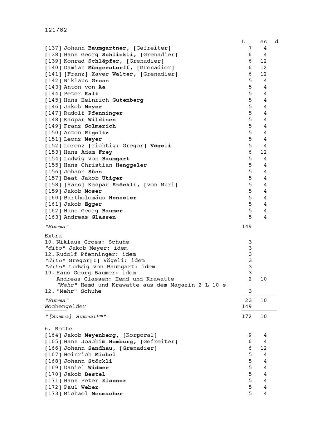 Mannschaftsrodel der Kompanie von Beat Jakob II. Zurlauben, Hauptmann im Regiment Pfyffer, aufgezeichnet von Franz Leonz Meyenberg, Hauptmann