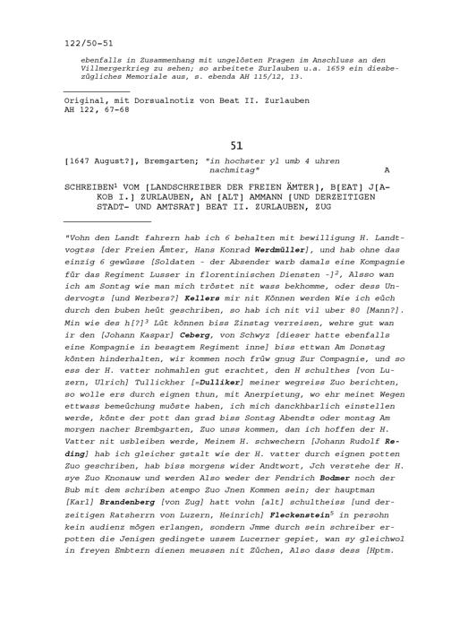 Schreiben von Beat Jakob I. Zurlauben, Landschreiber der Freien Ämter, an Beat II....