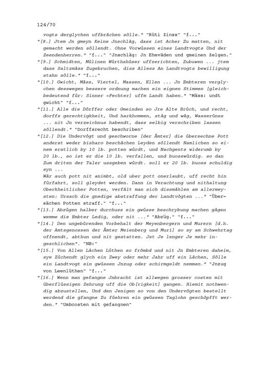 Fragen in Zusammenhang mit der Verwaltungsreform in den Freien Ämter, Änderungen und Neues, aufgezeichnet von Beat II. Zurlauben, Landschreiber