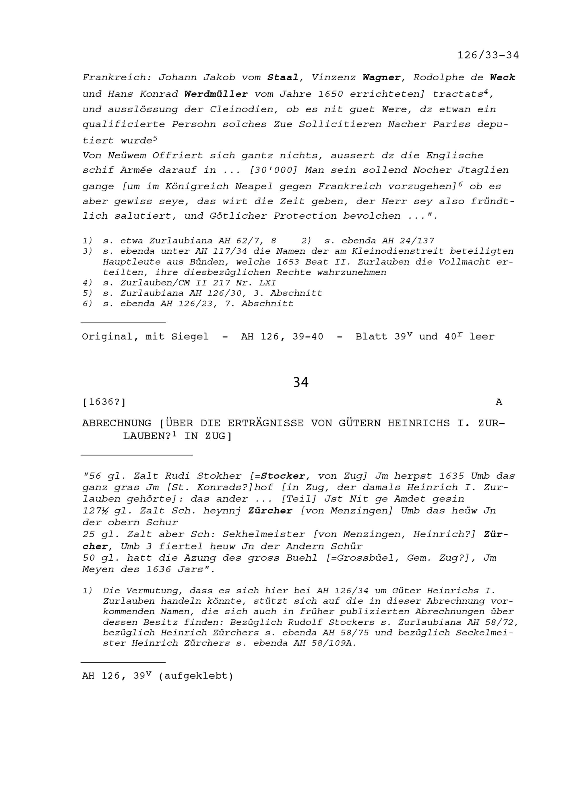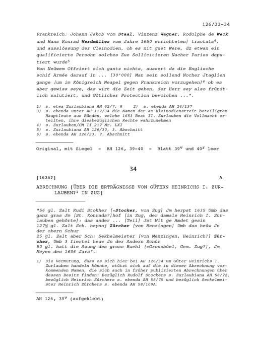 Abrechnung über die Erträge von Gütern von Heinrich I. Zurlauben in Zug