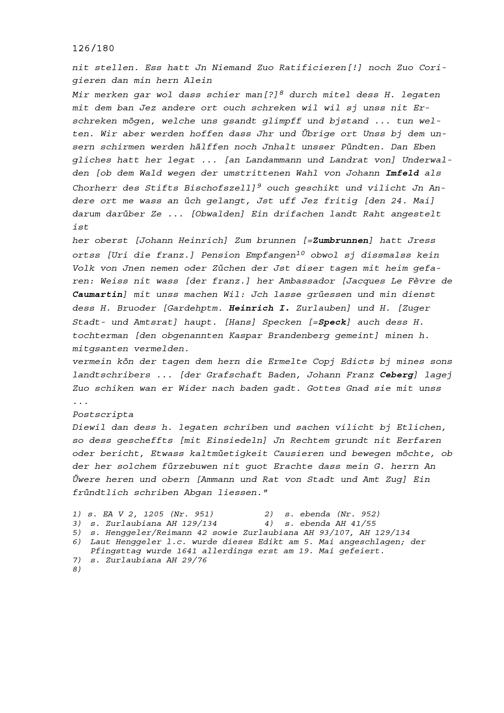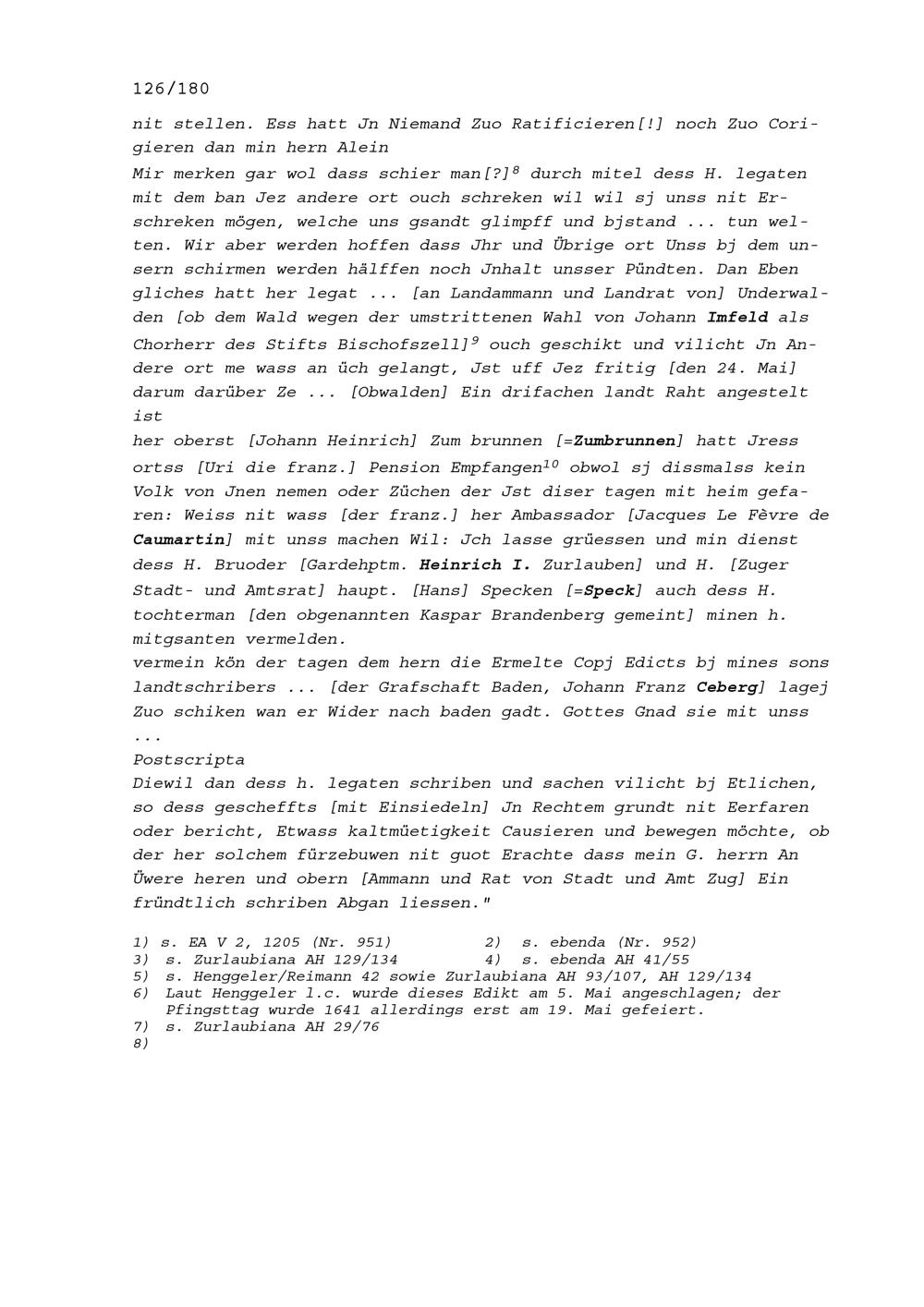 Schreiben von Johann Kaspar Ceberg, Ratsherr, an Beat II. Zurlauben, Ammann von Stadt und Amt Zug Hauptmann, Zug
