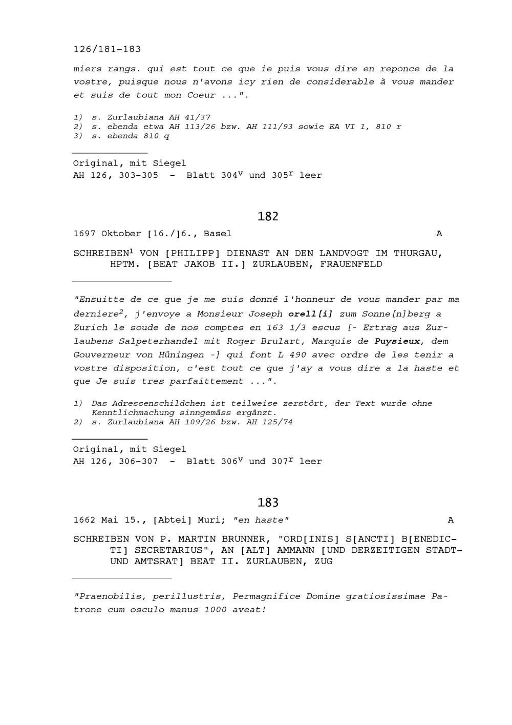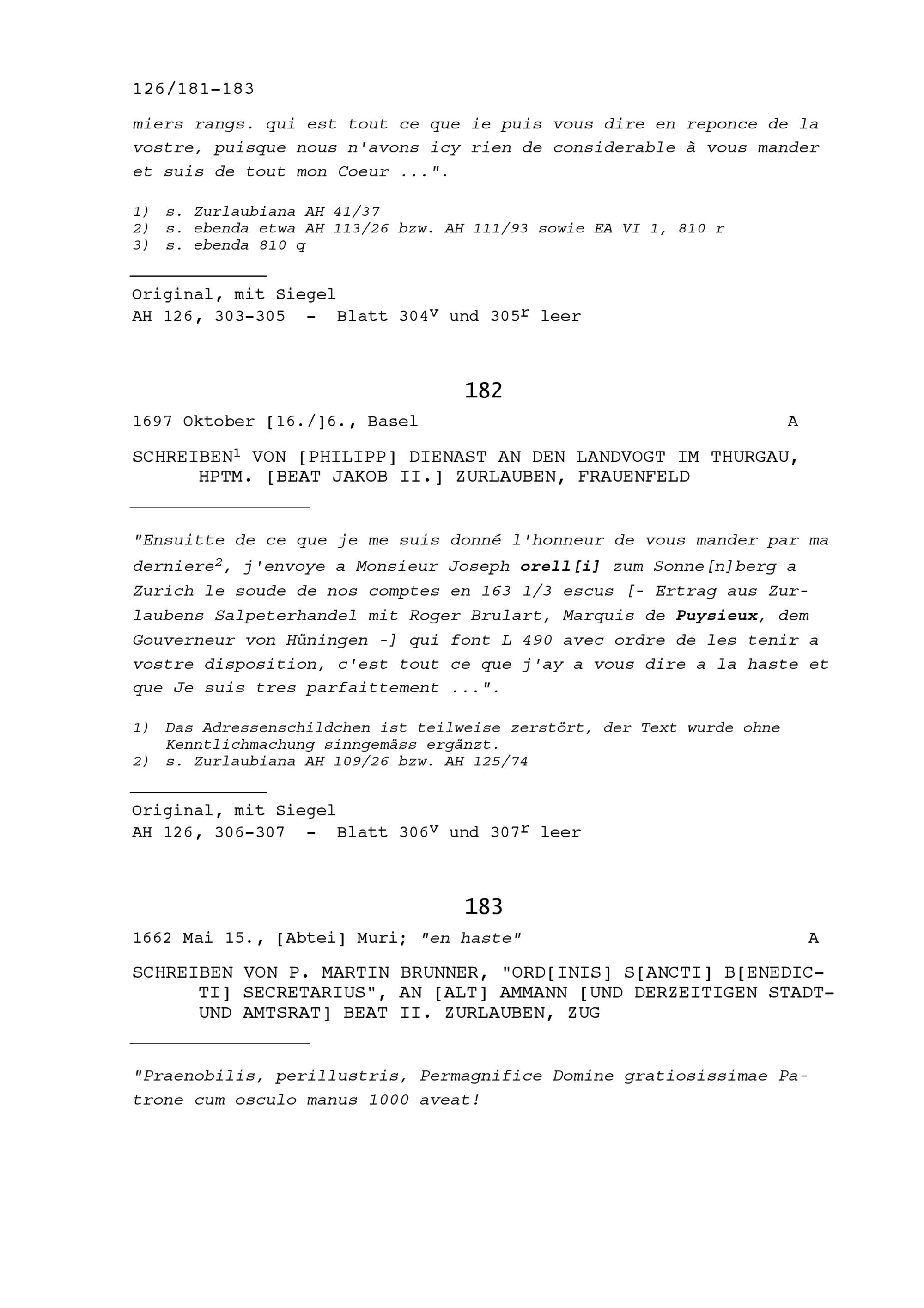 Schreiben von Martin Brunner, Benediktinerpater, an Beat II. Zurlauben, Altammann...