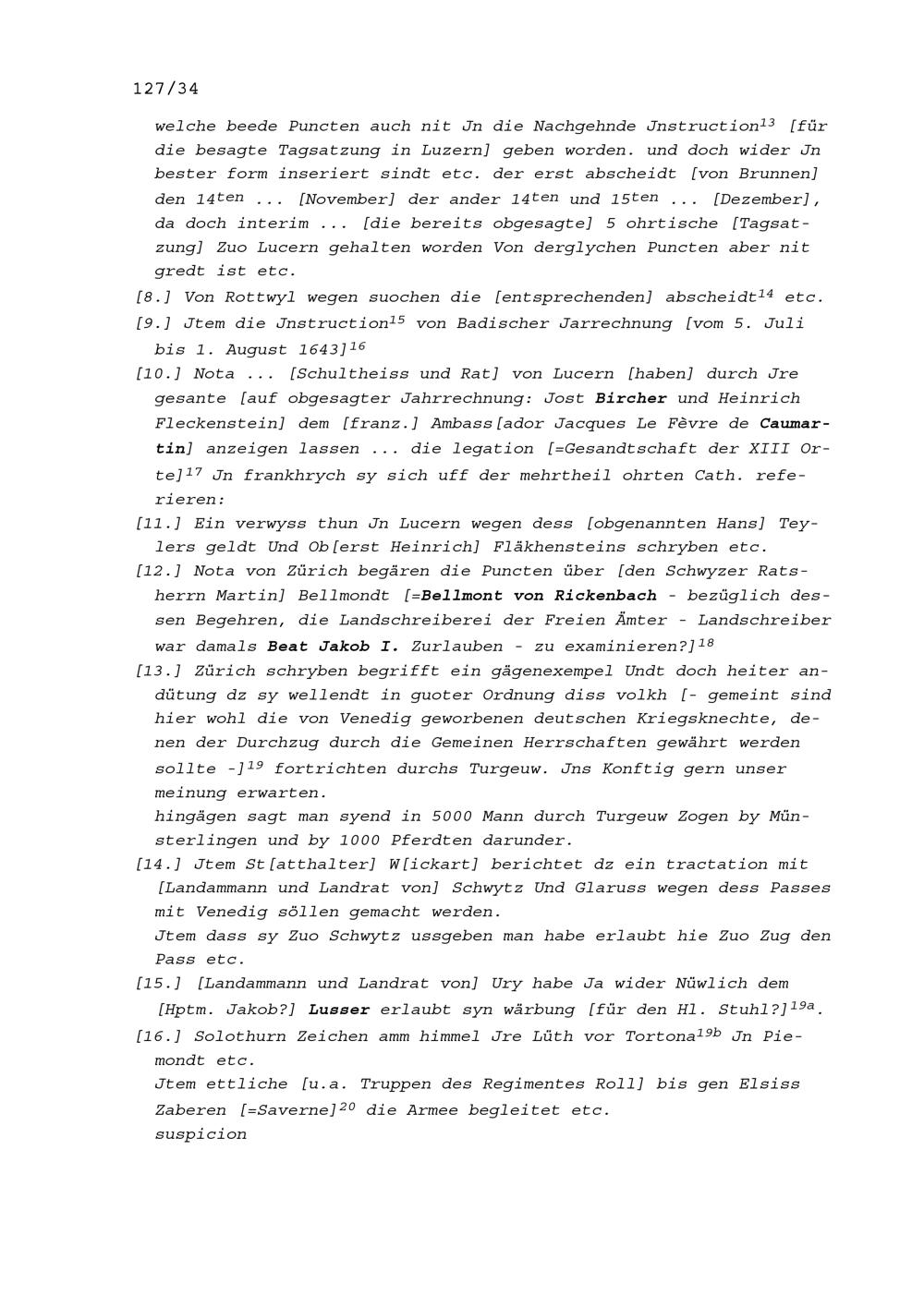 Notiz von Beat II. Zurlauben, Ammann von Stadt und Amt Zug, über die Stadt- und Amtratssitzung vom 28. Dezember 1643