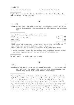Rechnungsnotizen von Heinrich Ludwig Zurlauben, Landschreiber der Freien Ämter, Besitzer...