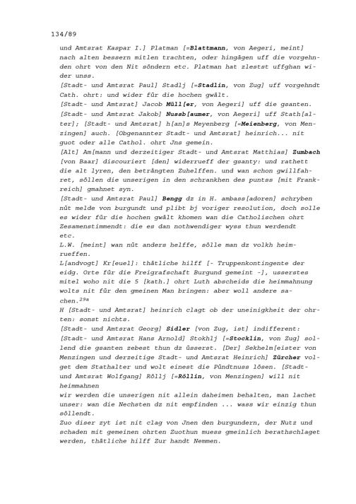 Notiz von Beat II. Zurlauben, Ammann von Stadt und Amt Zug, über die Sitzung des...