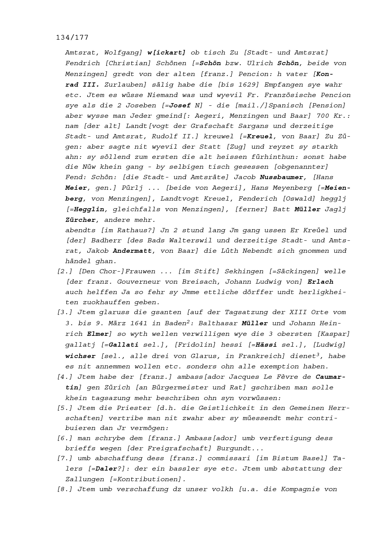 Notiz von Beat II. Zurlauben, Stadt- und Amtrat Zug, über die Sitzung des Stadt- und Amtrats vom 3. Mai 1641