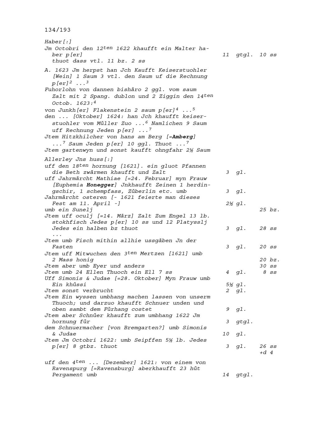 Zusammenstellung der Ausgaben und Einnahmen der persönlichen Haushaltung von Beat II. Zurlauben, Landschreiber der Freien Ämter, in Bremgarten