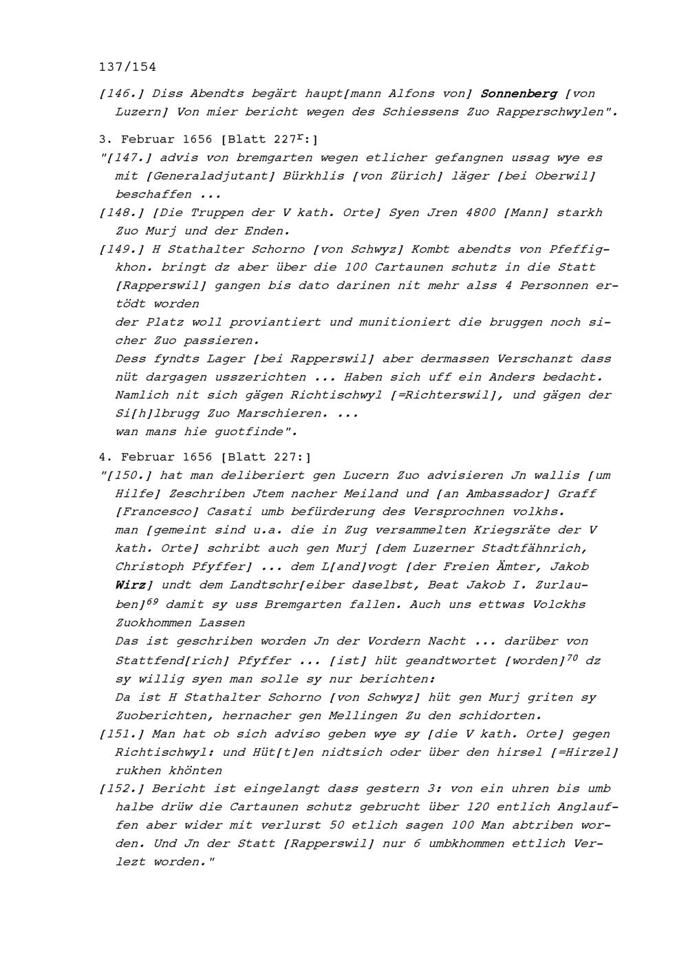 Notizen von Beat II. Zurlauben, Stadt- und Amtrat Zug und Kriegsrat, zum Artherhandel von 1655, zum Villmergerkrieg von 1656 sowie zu den Friedensverhandlungen