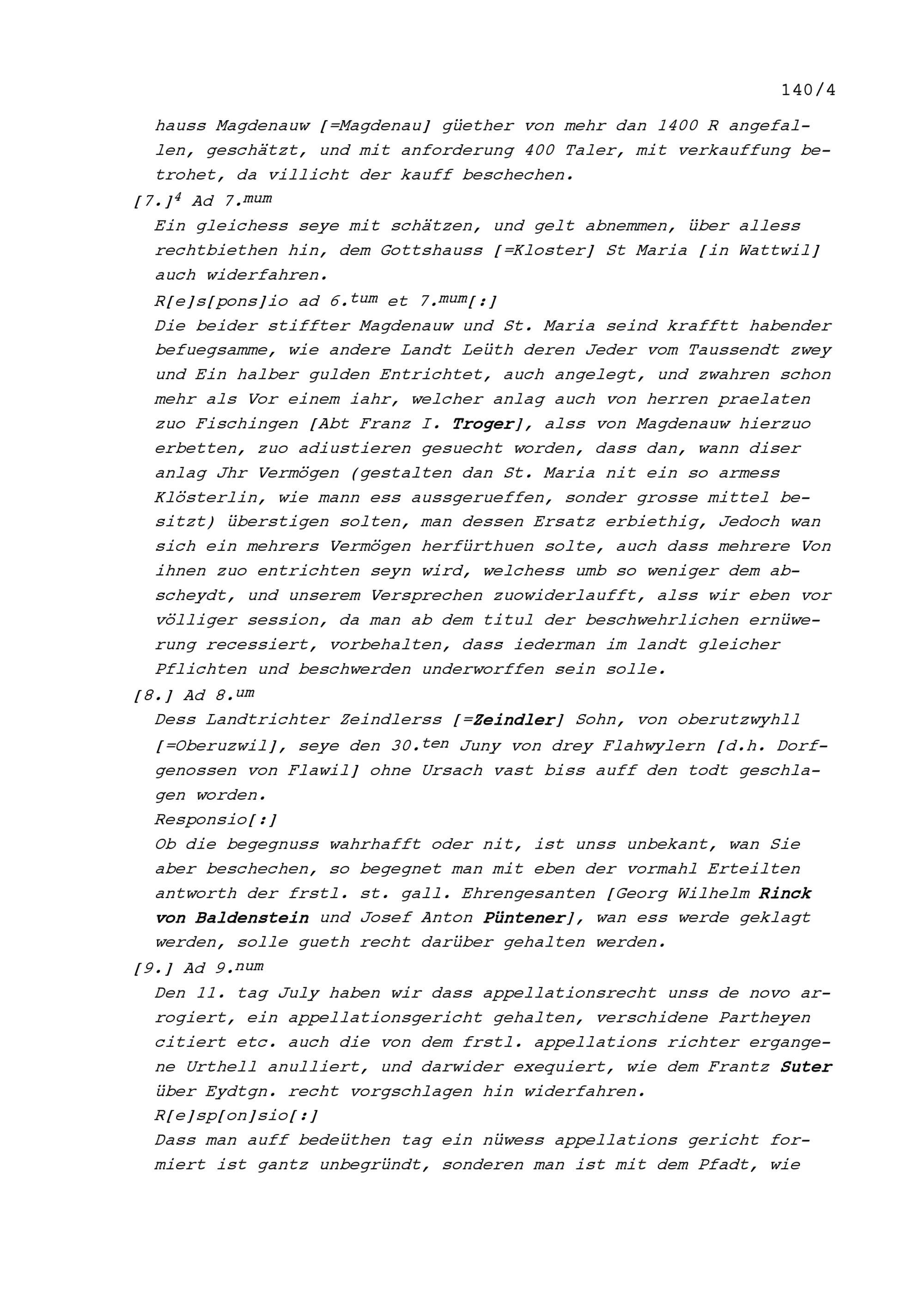 Abschied der am 7. Juli 1709 in Baden begonnenen Jahrrechnung der Dreizehn Orte sowie von Abtei und Stadt Sankt Gallen den Toggenburger Landrechtsstreit betreffend