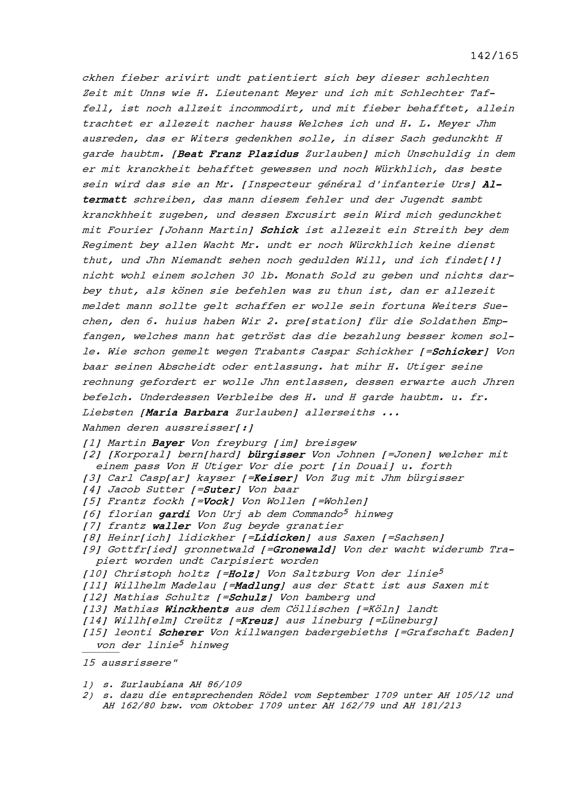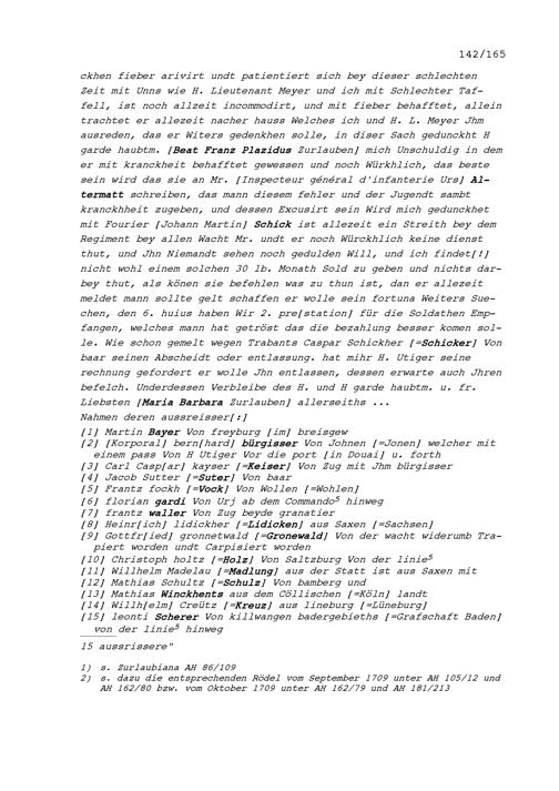 Schreiben von Hans Kaspar Schreiber, Fähnrich der Kompanie Zurlauben im Regiment...