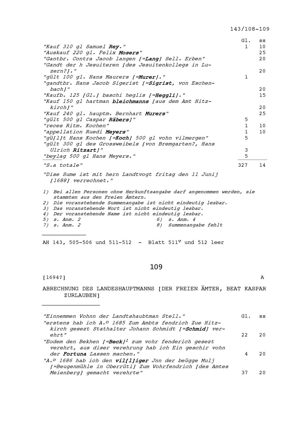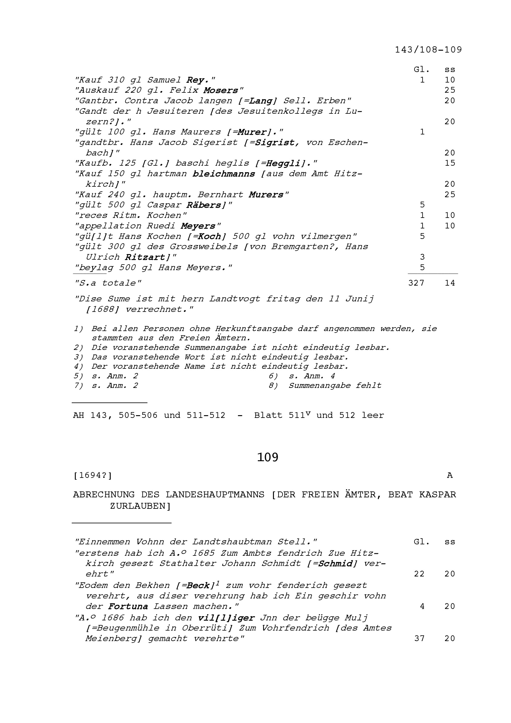 Abrechnung von Beat Kaspar Zurlauben, Landeshauptmann der Freien Ämter