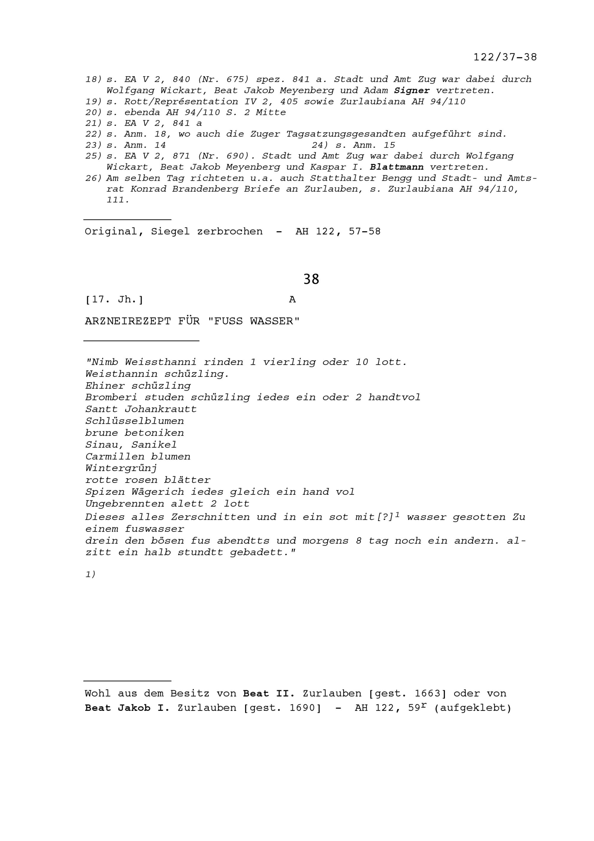 Schreiben von Beat Jakob Knopfli, Stadtschreiber, an Beat II. Zurlauben, Ammann und...