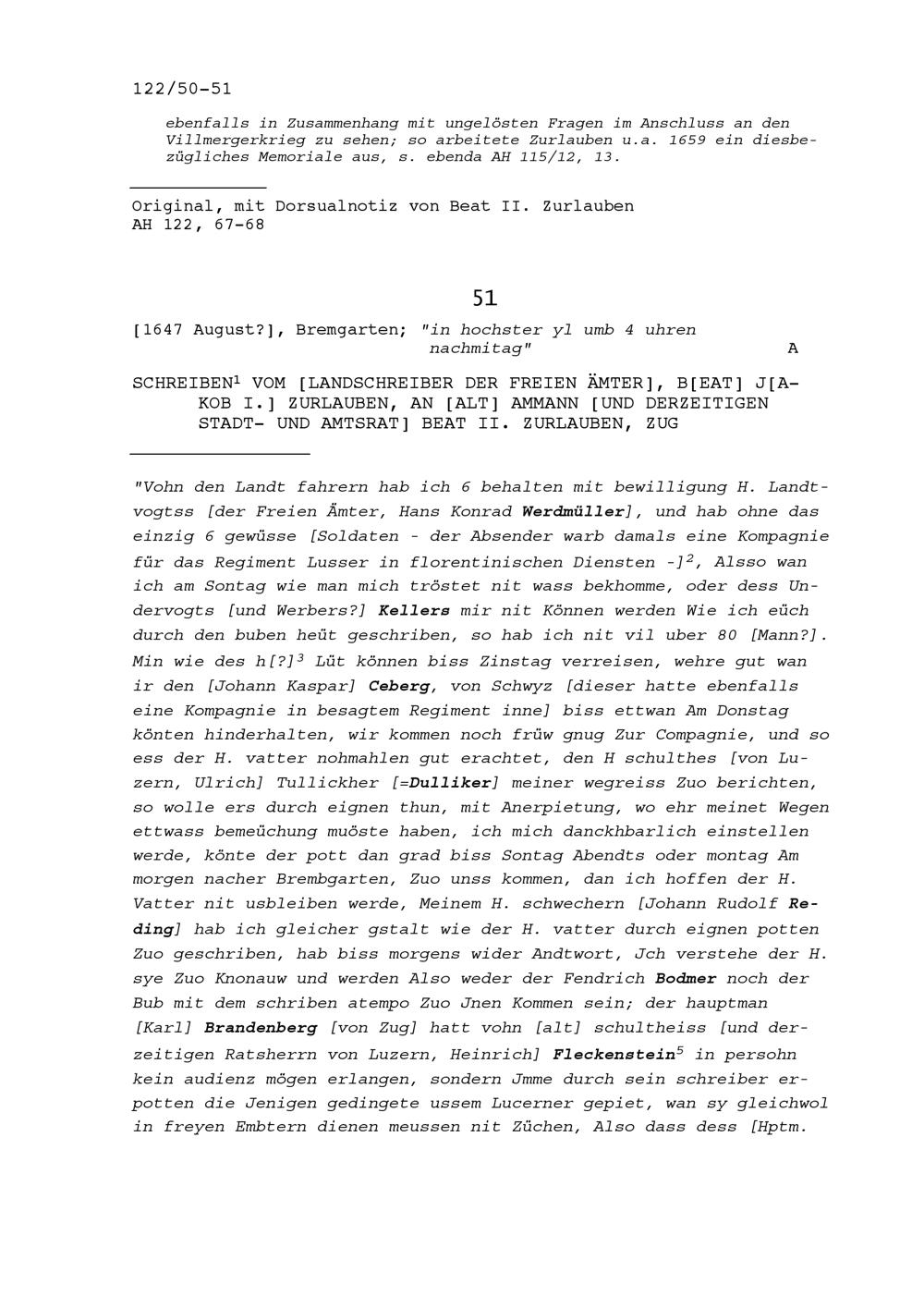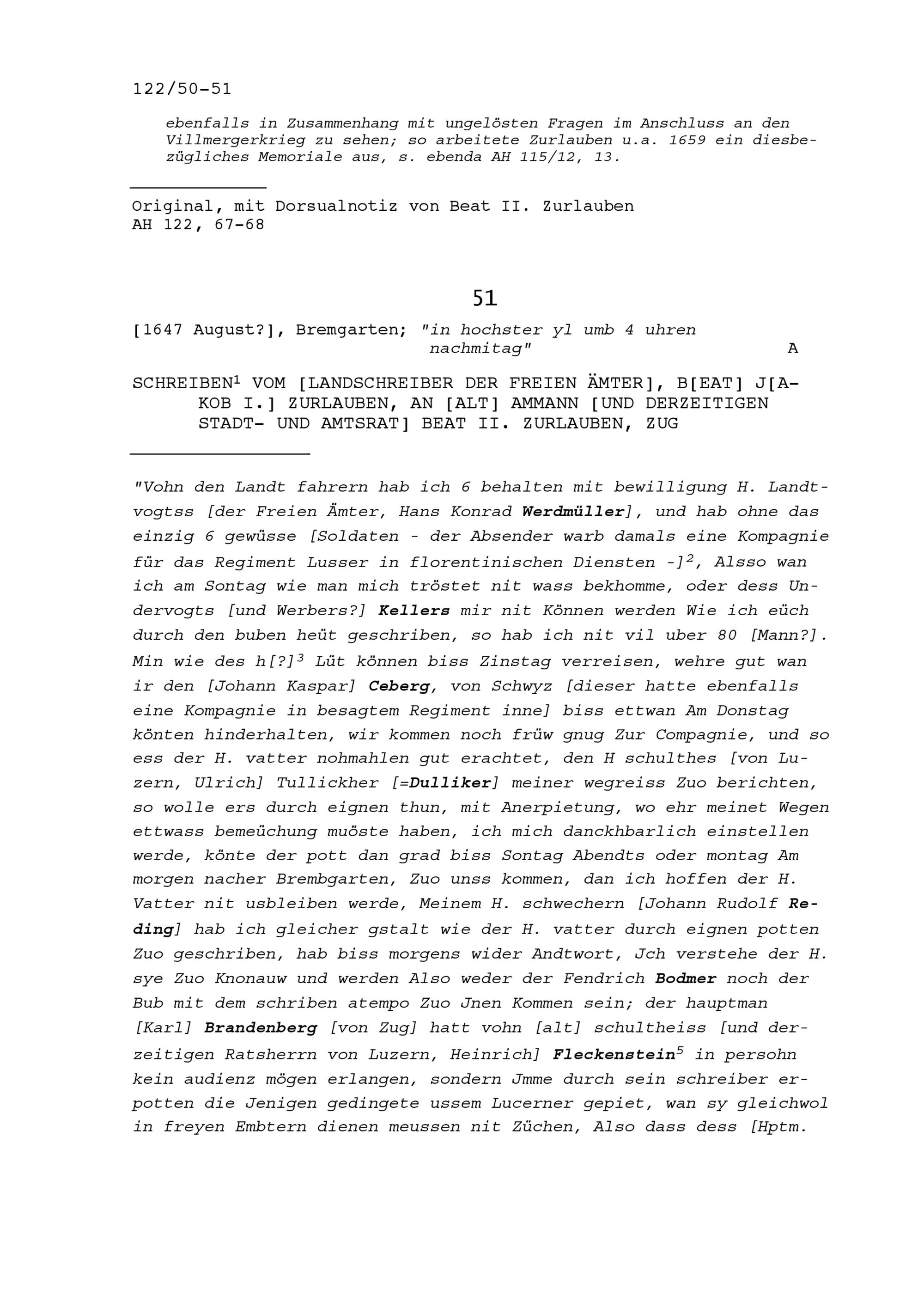 Schreiben von Ludwig Hartmann, Stadtschreiber, an Beat II. Zurlauben, Stadt- und...
