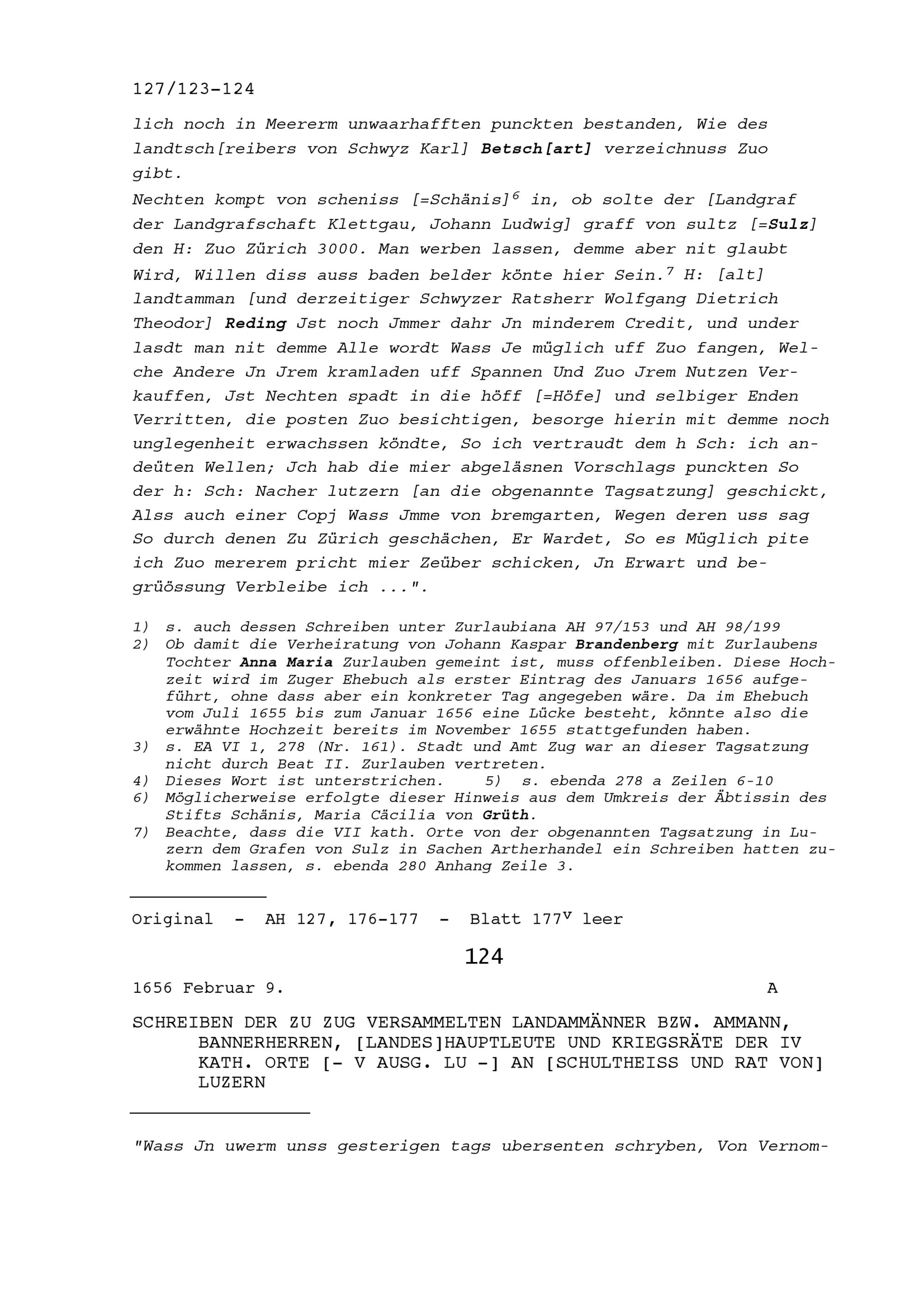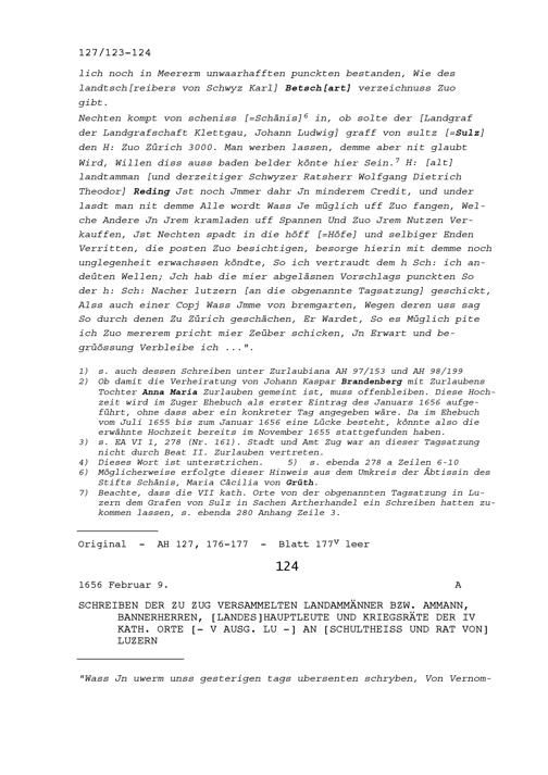 Schreiben von Balthasar Aufdermaur, Ratsherr Schwyz, an Beat II. Zurlauben, Stadt- und Amtrat Zug