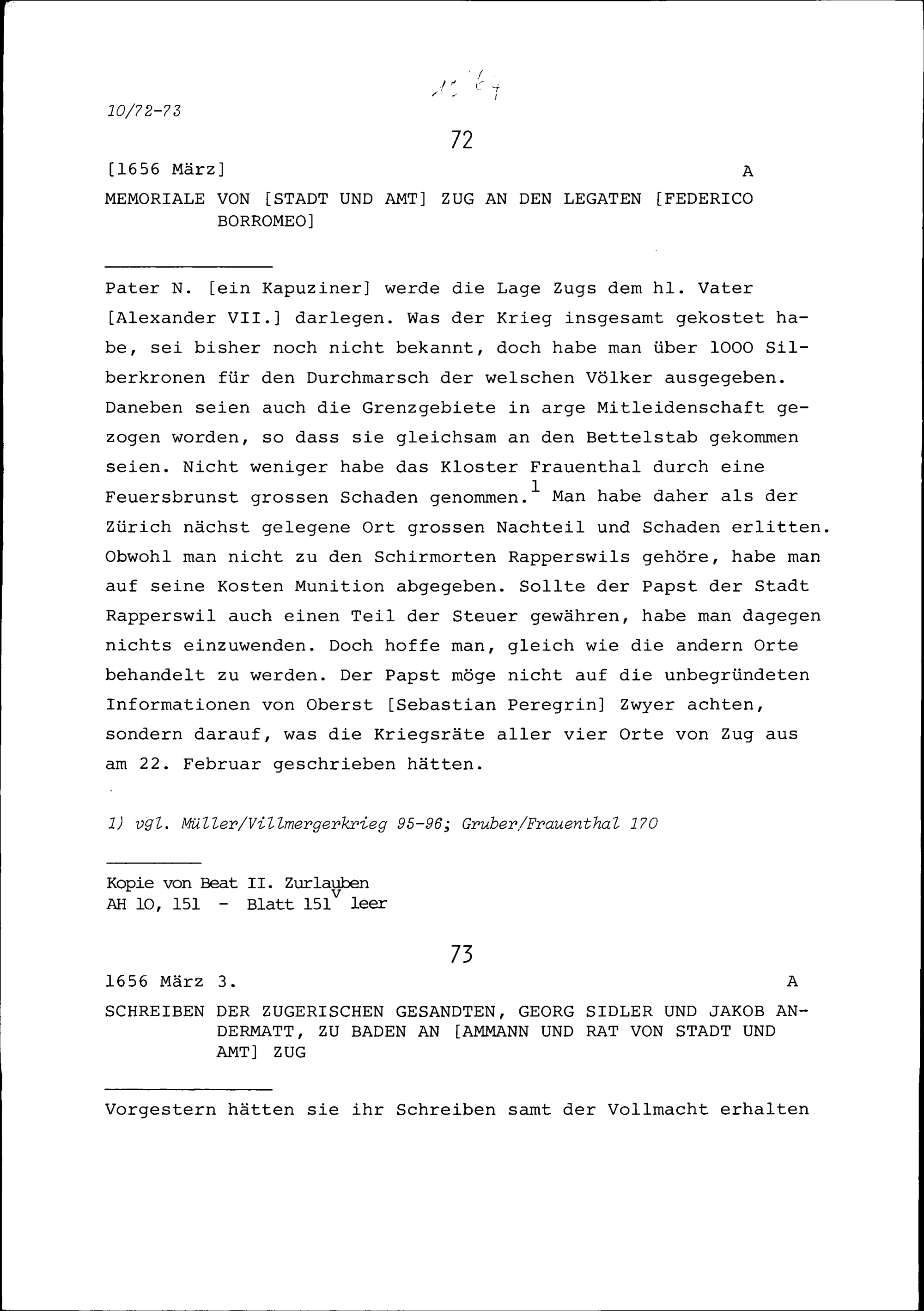 Bericht von Stadt und Amt Zug an Federico Borromeo, Nunitius
