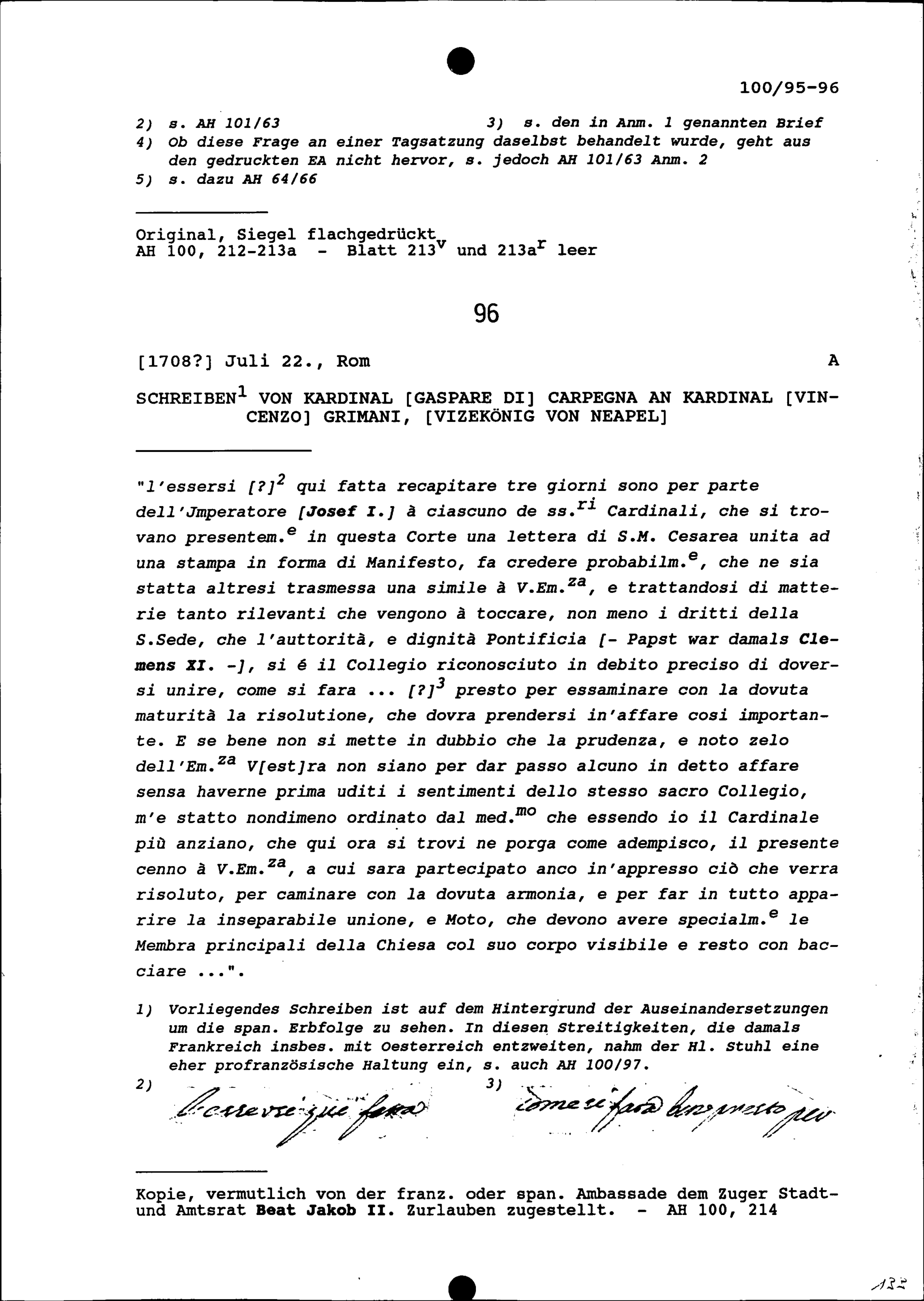 Schreiben von Gaspare Carpegna, Kardinal, an Vincenzo Grimani, Vizekönig von Neapel und Kardinal