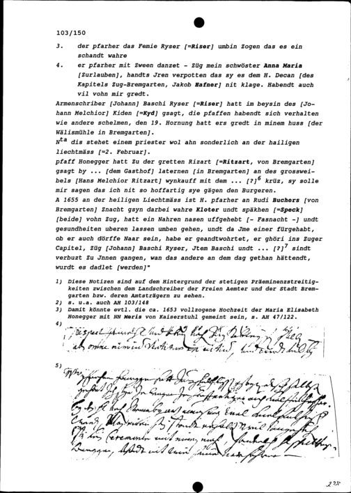 Notiz von Beat Jakob I. Zurlauben, Landschreiber der Freien Ämter, über seine Streitigkeiten mit Johann Heinrich Honegger, Pfarrer von Bremgarten