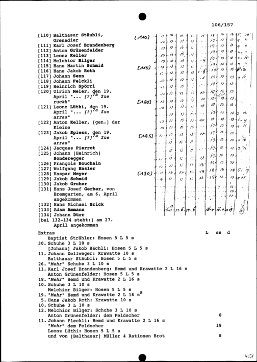 Mannschaftsrodel der Kompanie von Beat Jakob II. Zurlauben im Regiment Pfyffer, verfasst von Hans Kaspar Schreiber, Fähnrich