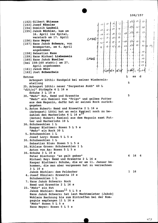 Mannschaftsrodel der Kompanie von Beat Jakob II. Zurlauben im Regiment Pfyffer, verfasst von Hans Kaspar Schreiber, Fähnrich